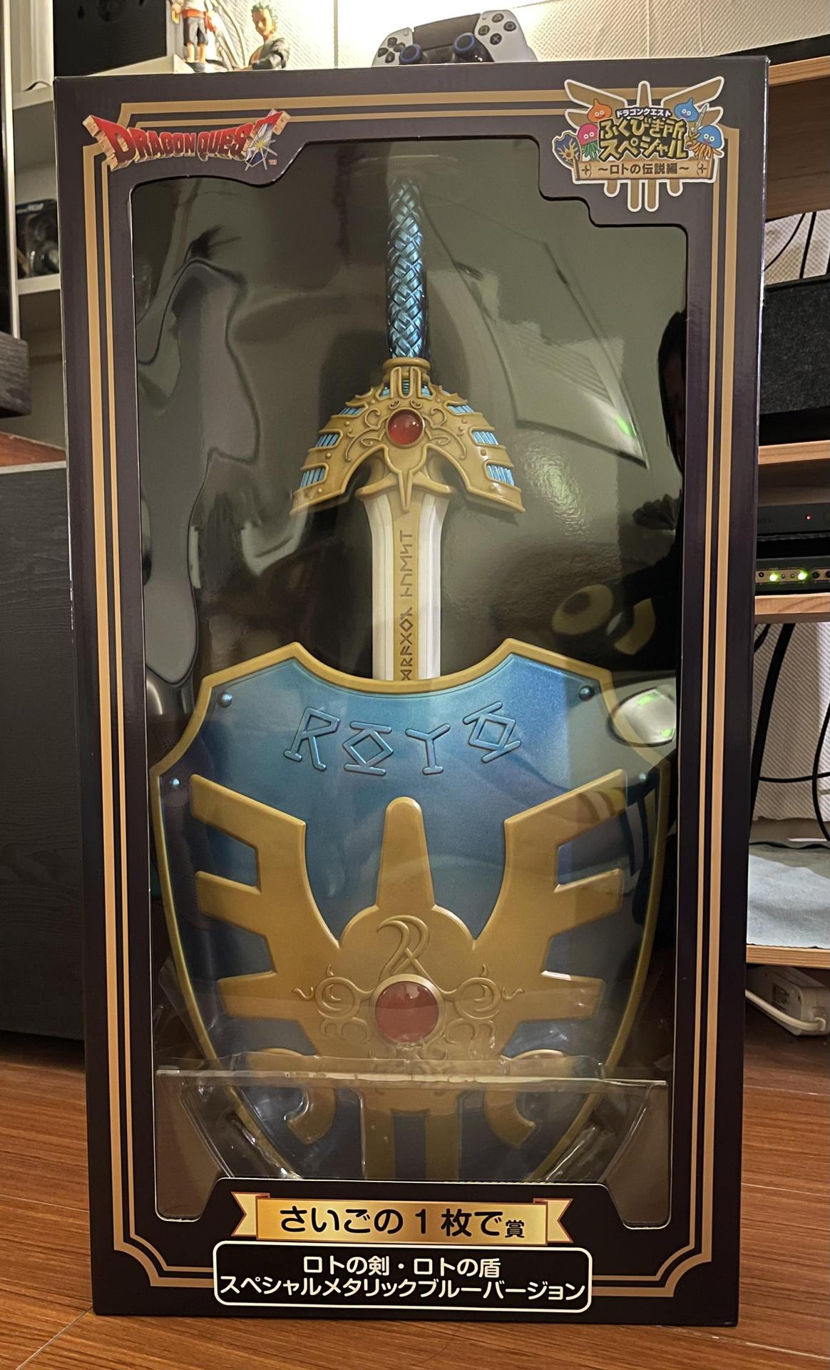 羅德劍盾的周邊來自「勇者鬥惡龍 一番賞」的最後賞,其實羅德之劍與盾各自於早期就分別推出過,只是我都錯過了,這次作為最後賞除了劍盾一次打包外,為與之前版本做出區隔採用了金屬藍配色。