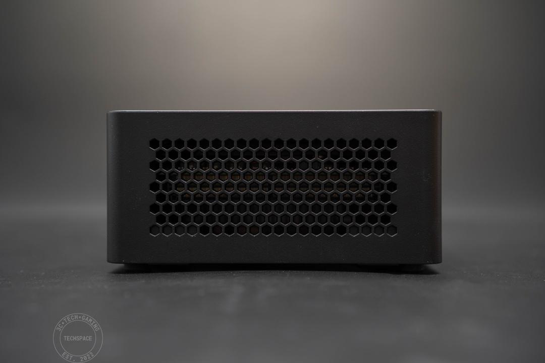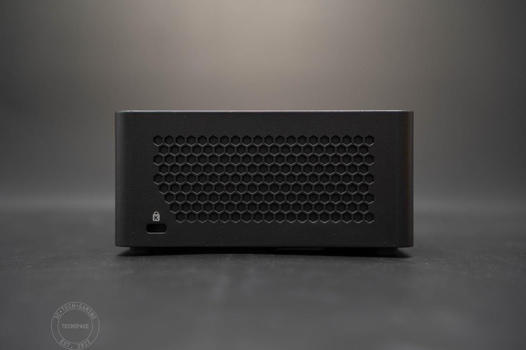 左右兩側則是大範圍的蜂巢式散熱網孔,其中也有提供 Kensington 鎖供企業使用。