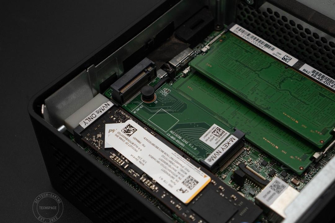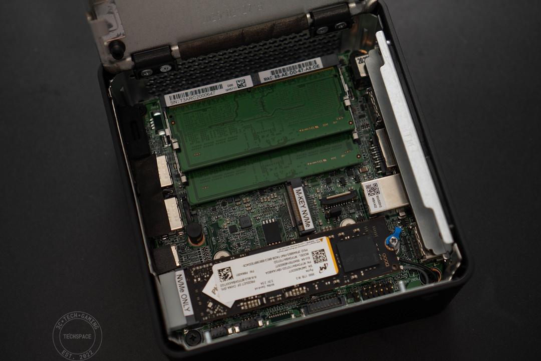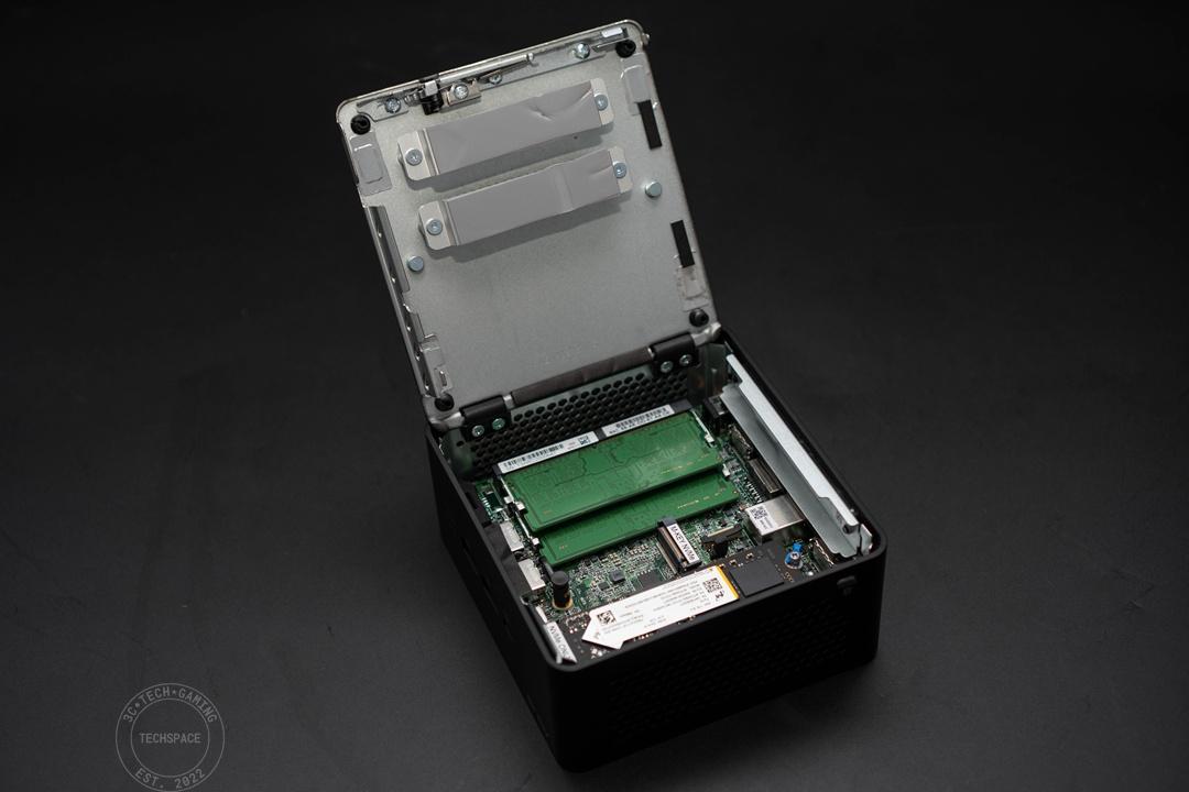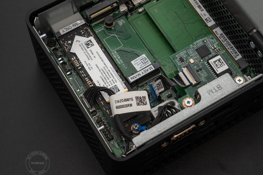 至於最下方左右十字螺絲和中間的空間布局,就是這次 ASUS NUC 15 Pro 的最大亮點:可自行更換的擴充空間。
