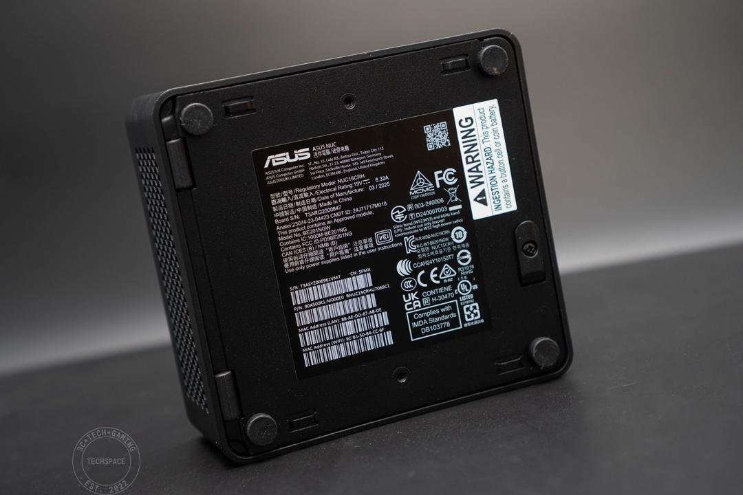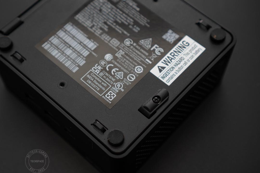 安裝方式很簡單,首先 ASUS NUC 15 Pro 機身底部這次只有在四邊提供橡膠墊固定,底部可見唯一的一組螺絲拉閥。