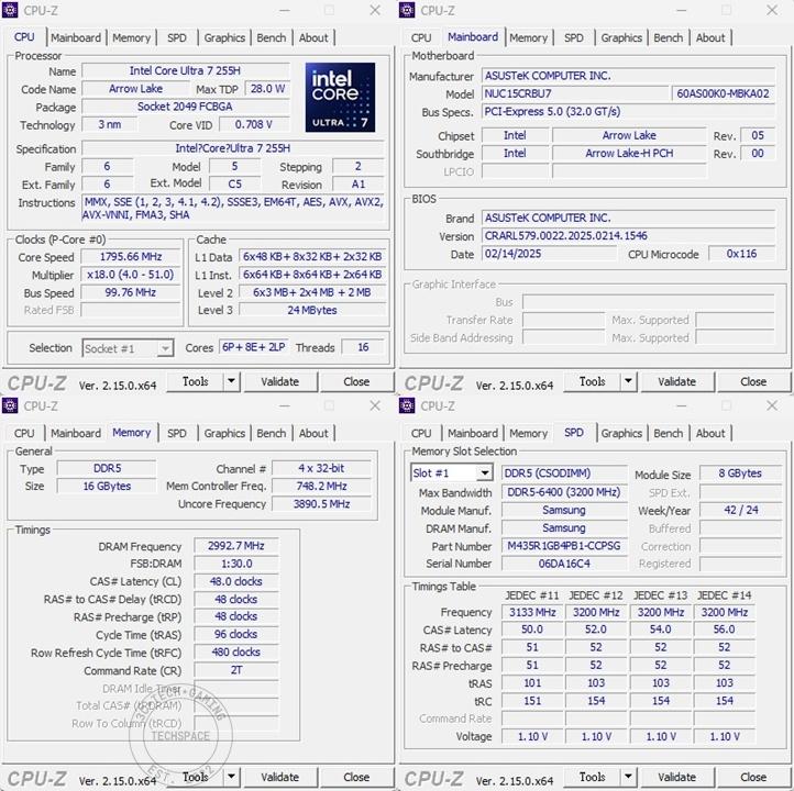 以我們手上的版本來說,記憶體方面是預先搭載了兩條 Samsung DDR5 6400 8GB 記憶體,組成 16GB 環境。