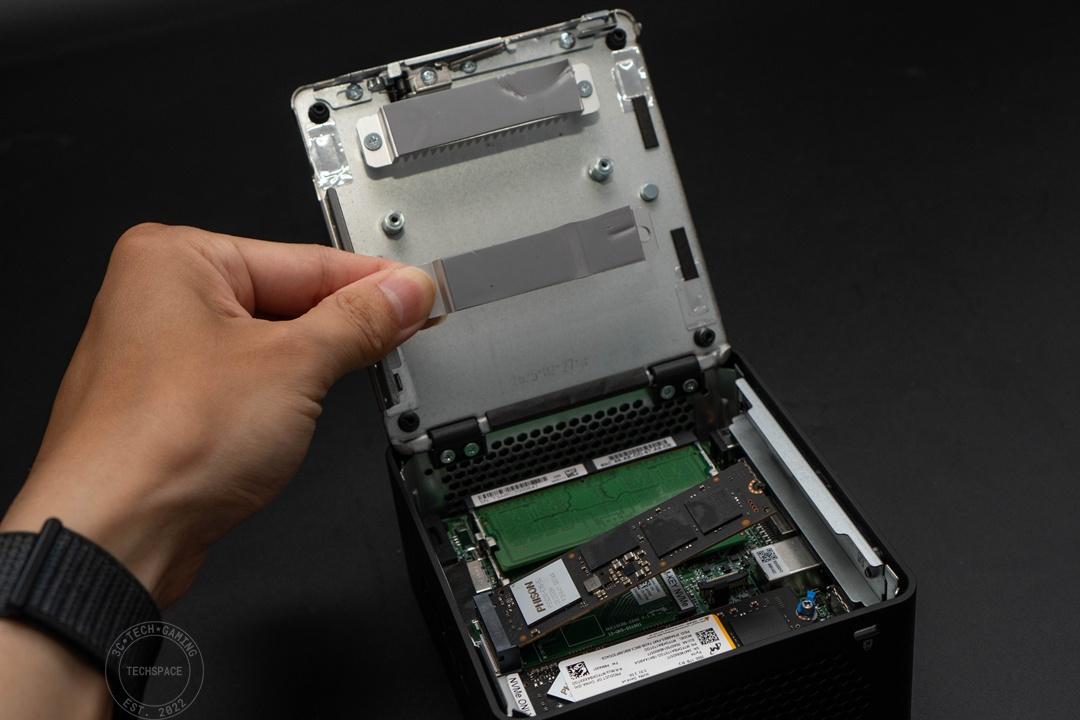 要注意的是,如果有安裝 M.2 Type-2280 套件的話,機身底蓋內下方的散熱架要取下,以免影響機身開闔,建議第二條 SSD 本身可有基本的獨立散熱輔助。