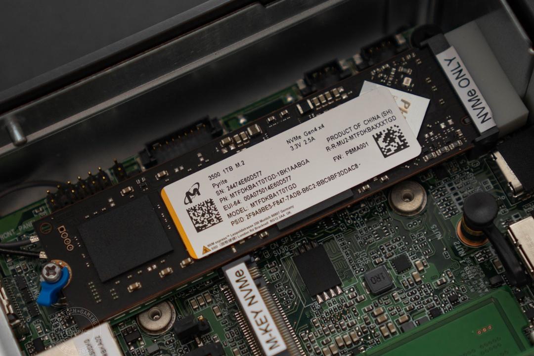 SSD 部分則是搭載 Micron 3500 1TB M.2 Gen 4×4 SSD。以官方規格來看,該插槽是可支援到 Gen 5×4 規格的,但這時 M-Key 部分插槽共用頻寬下便無法使用。