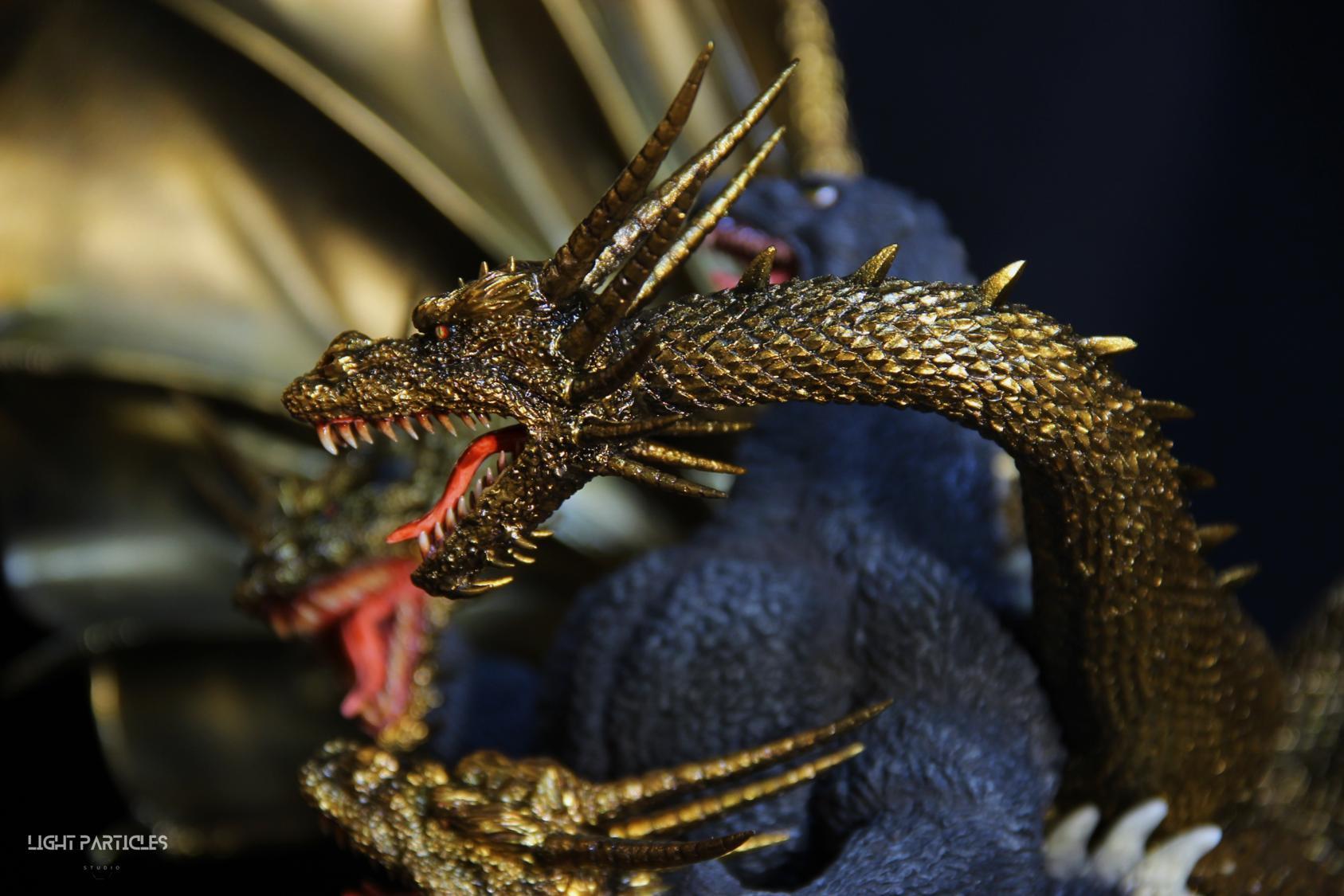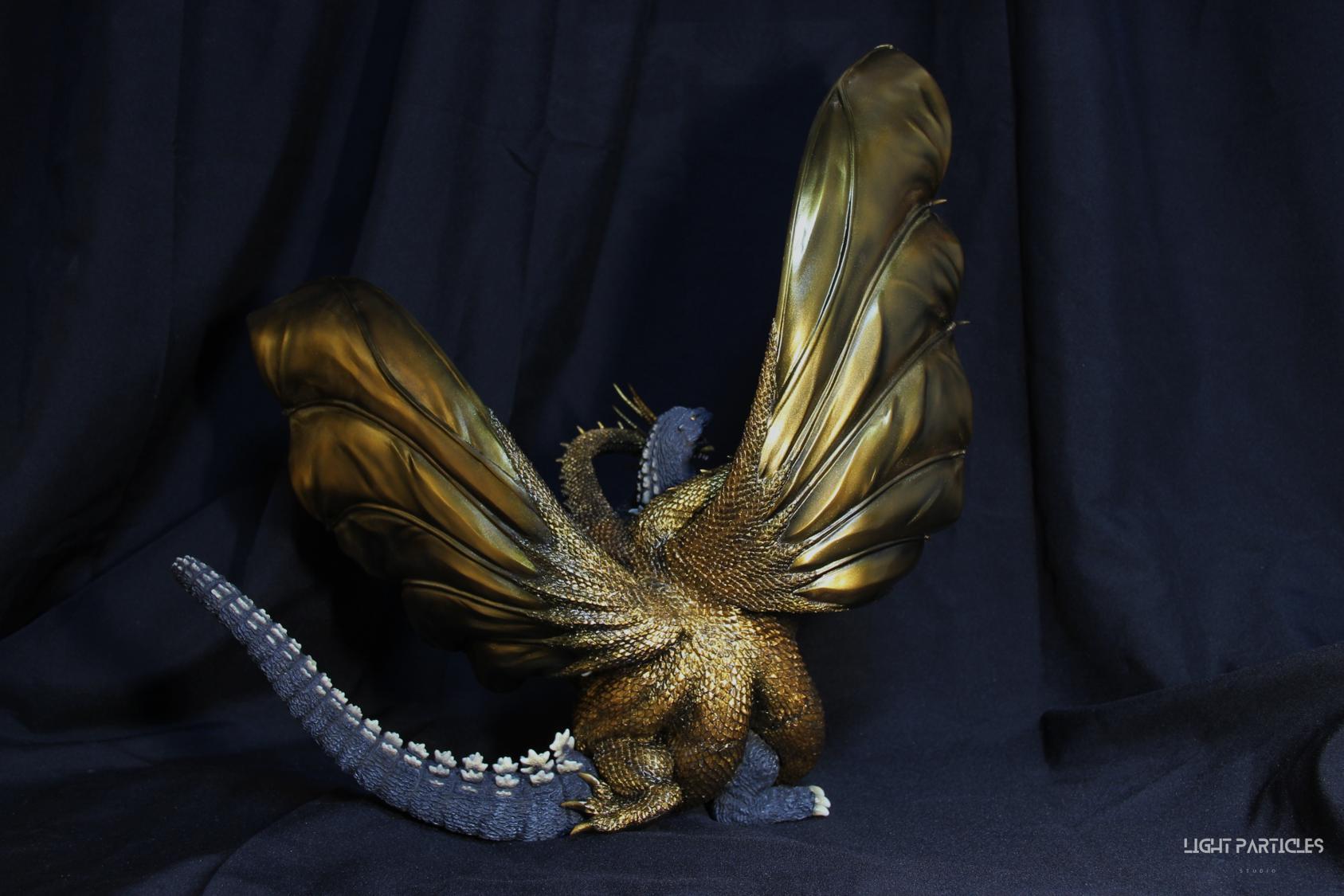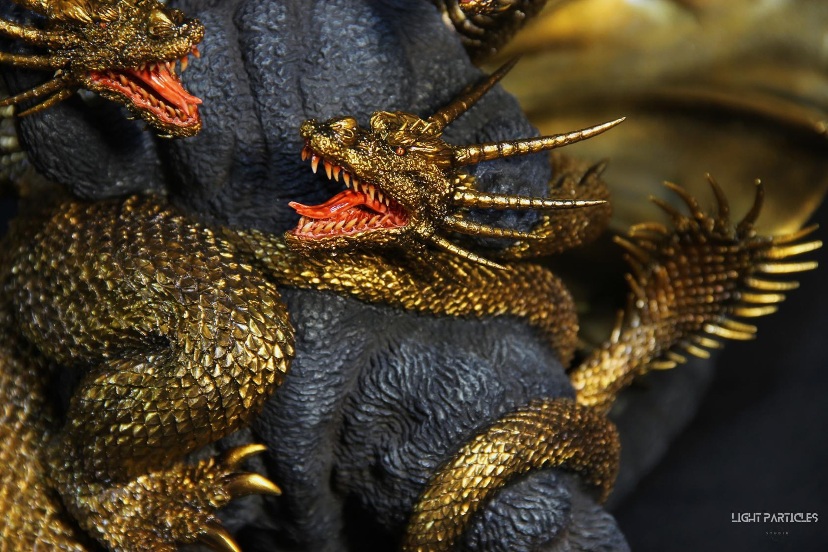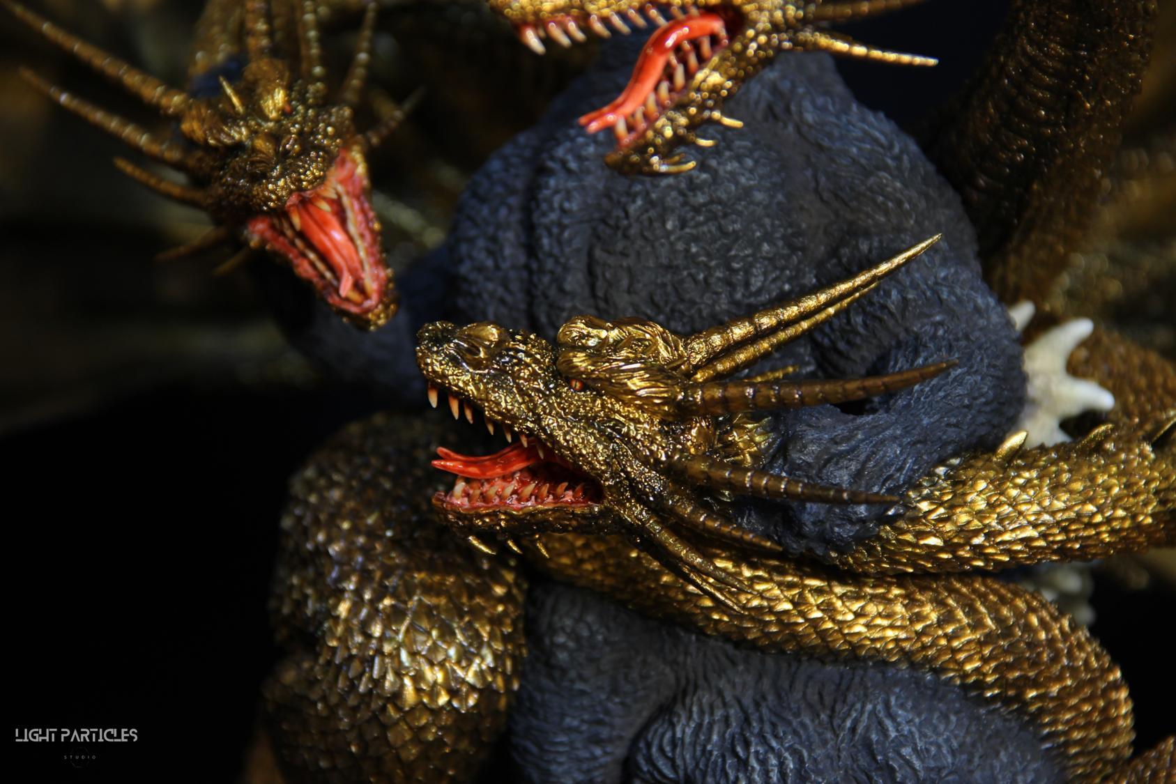 這組經典款套件是在2022年再次販售的版本,初版是1997發售。當時入手後一直放在倉庫內,經客戶詢問後,便選擇讓出並根據委託需求進行上色。第一次製作酒井的套件,所以進行比較仔細的紀錄。經過之前製作D-tech Q版後,本想這組套件應該不會再遇到密合度跟缺肉的問題,但還真是遇到了(苦笑)。除了將密合度修復外,還需要將基多拉的鱗片進行重新雕塑補齊,把紋理接順,這組套件真的花不少時間在基多拉紋理重製上。最後,根據客戶需求使用銅色系金屬漆對王者基多拉噴塗上色。透過透明色系增加層次外,也用砝瑯漆把層次洗出來,增加整體的厚重感。套件本身翻模的顏色很適合保留下來在牙齒與指甲部位,塗裝後讓這些部位保留半透明感。很開心能把這套經典套件完成,希望大家喜歡~