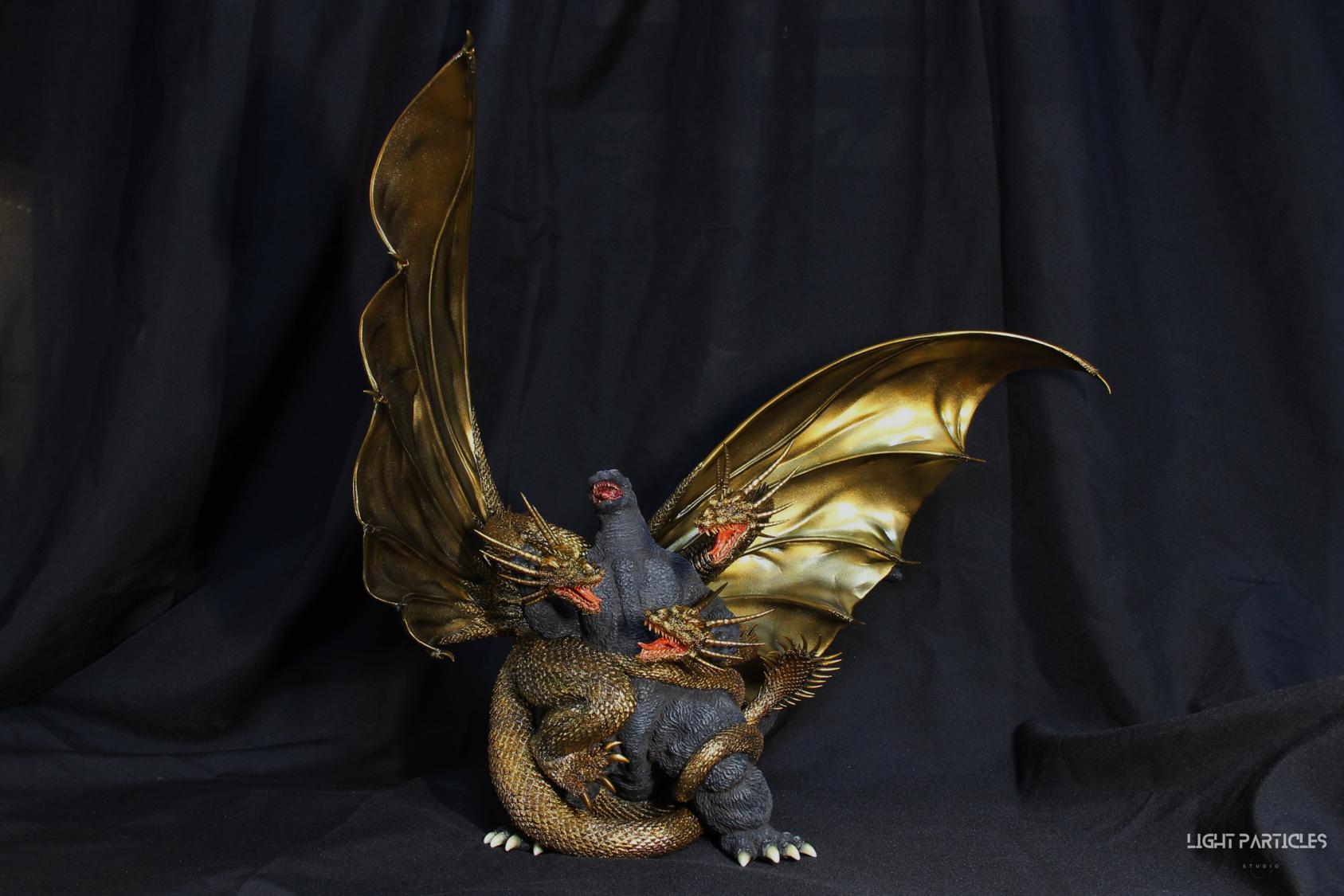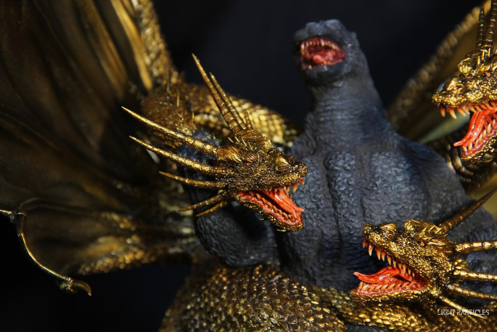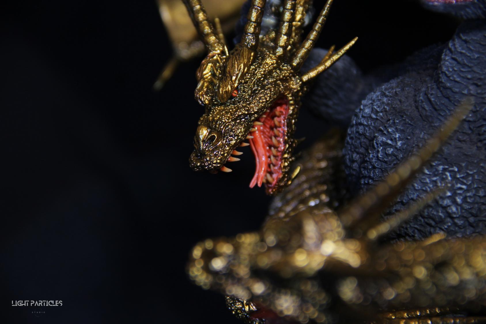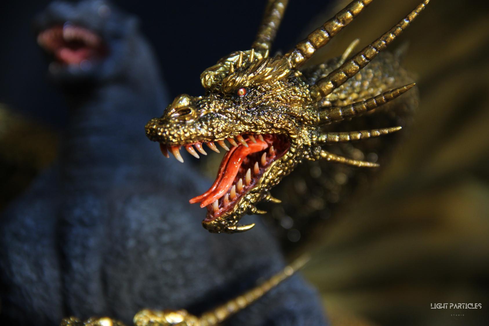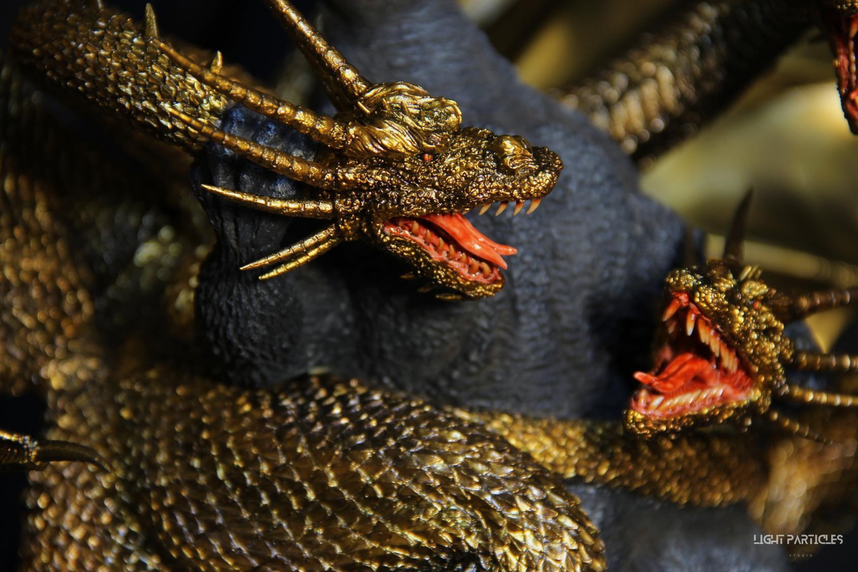 這組經典款套件是在2022年再次販售的版本,初版是1997發售。當時入手後一直放在倉庫內,經客戶詢問後,便選擇讓出並根據委託需求進行上色。第一次製作酒井的套件,所以進行比較仔細的紀錄。經過之前製作D-tech Q版後,本想這組套件應該不會再遇到密合度跟缺肉的問題,但還真是遇到了(苦笑)。除了將密合度修復外,還需要將基多拉的鱗片進行重新雕塑補齊,把紋理接順,這組套件真的花不少時間在基多拉紋理重製上。最後,根據客戶需求使用銅色系金屬漆對王者基多拉噴塗上色。透過透明色系增加層次外,也用砝瑯漆把層次洗出來,增加整體的厚重感。套件本身翻模的顏色很適合保留下來在牙齒與指甲部位,塗裝後讓這些部位保留半透明感。很開心能把這套經典套件完成,希望大家喜歡~