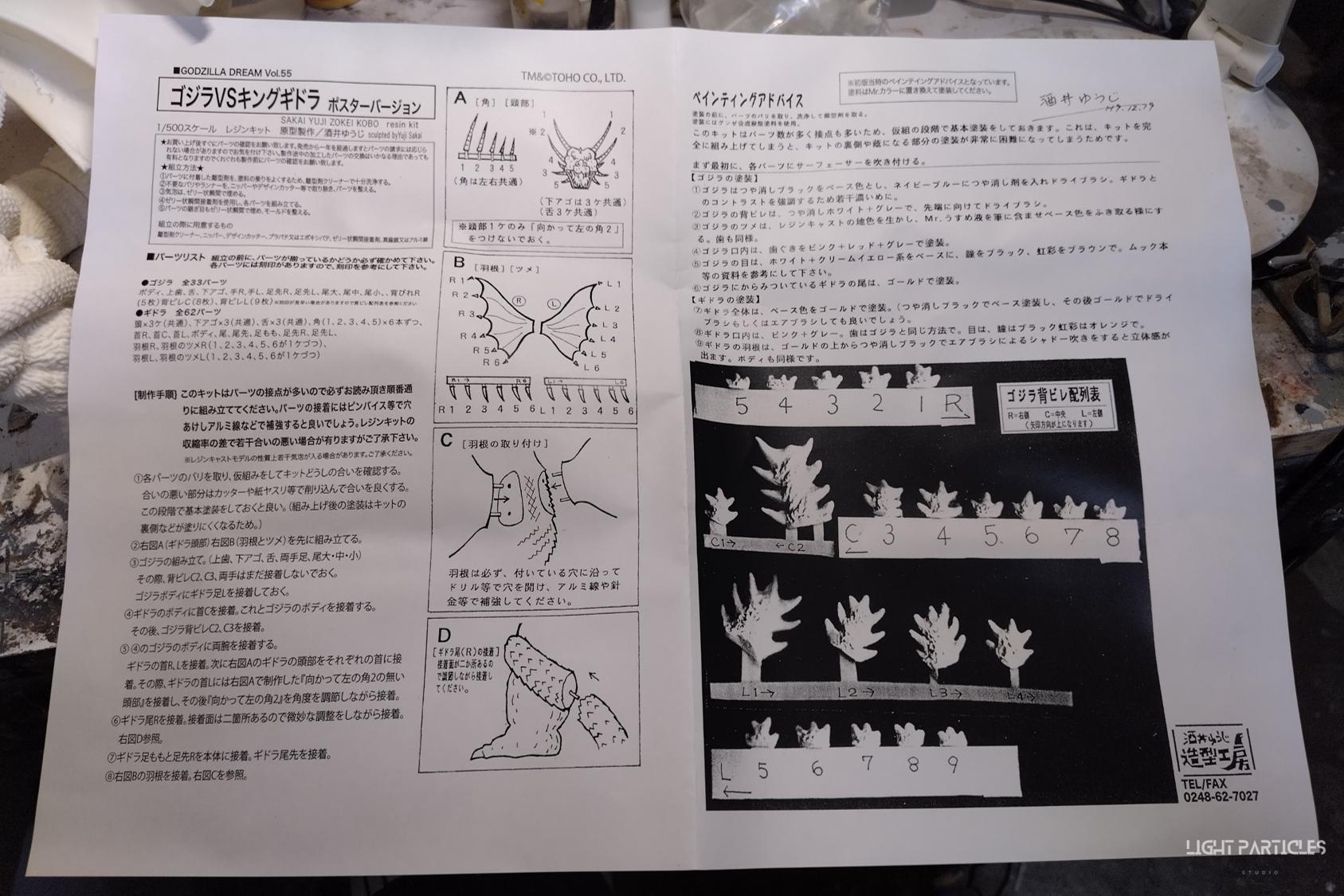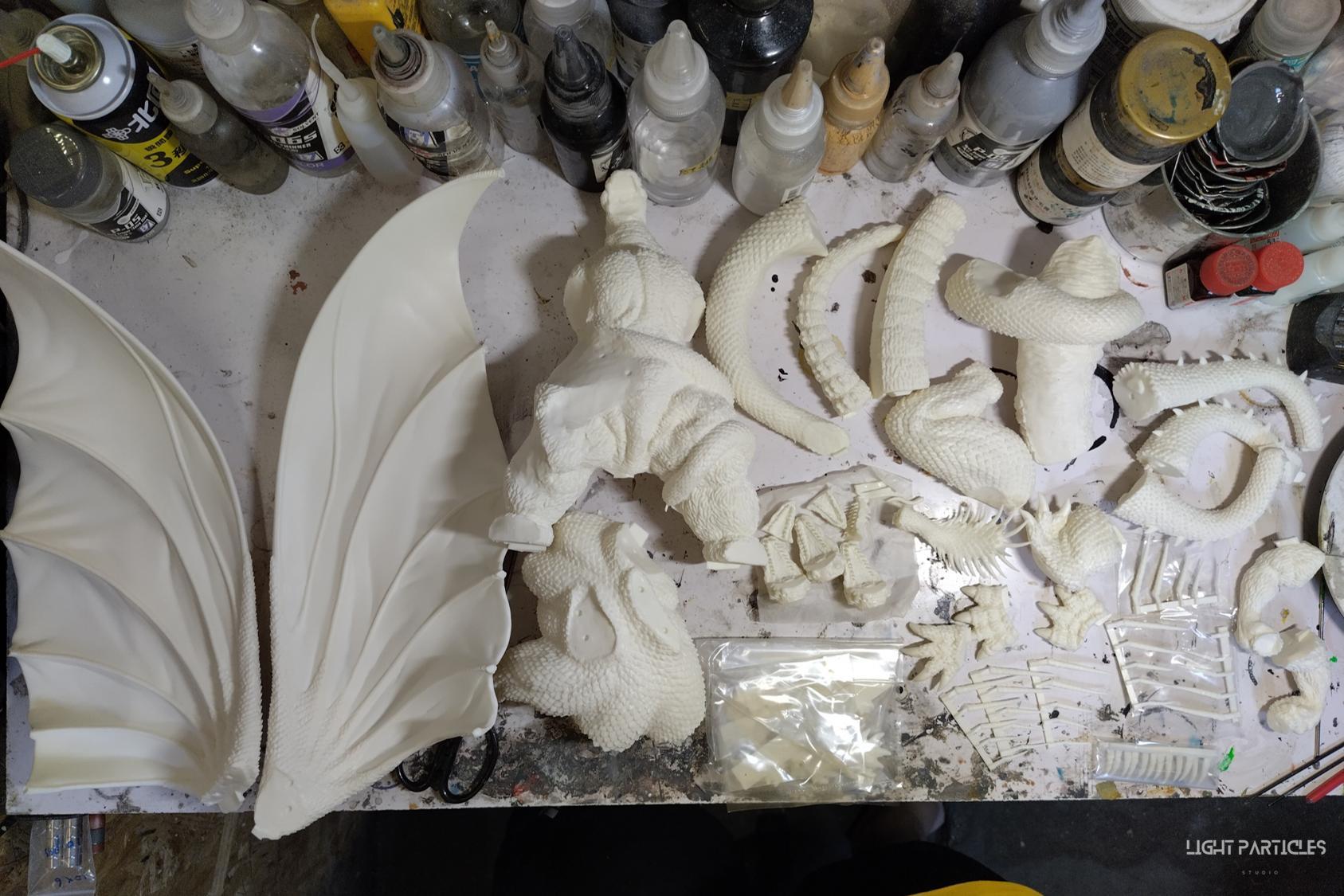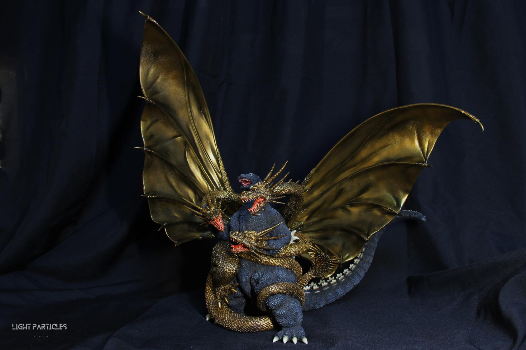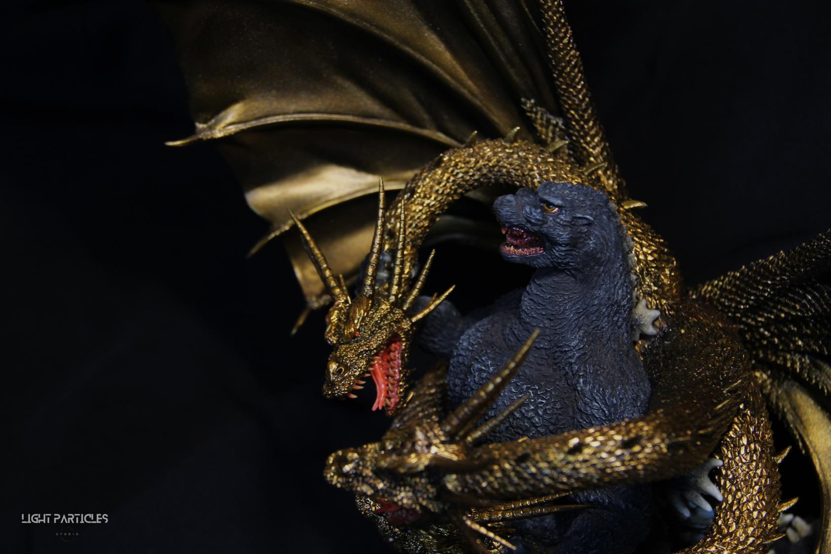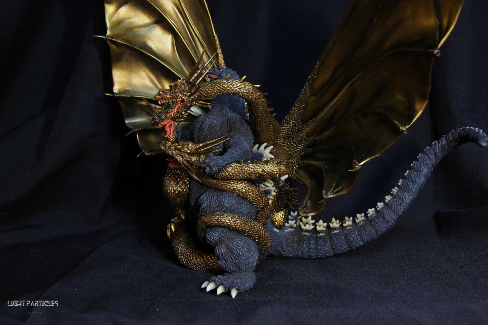 這組經典款套件是在2022年再次販售的版本,初版是1997發售。當時入手後一直放在倉庫內,經客戶詢問後,便選擇讓出並根據委託需求進行上色。第一次製作酒井的套件,所以進行比較仔細的紀錄。經過之前製作D-tech Q版後,本想這組套件應該不會再遇到密合度跟缺肉的問題,但還真是遇到了(苦笑)。除了將密合度修復外,還需要將基多拉的鱗片進行重新雕塑補齊,把紋理接順,這組套件真的花不少時間在基多拉紋理重製上。最後,根據客戶需求使用銅色系金屬漆對王者基多拉噴塗上色。透過透明色系增加層次外,也用砝瑯漆把層次洗出來,增加整體的厚重感。套件本身翻模的顏色很適合保留下來在牙齒與指甲部位,塗裝後讓這些部位保留半透明感。很開心能把這套經典套件完成,希望大家喜歡~
