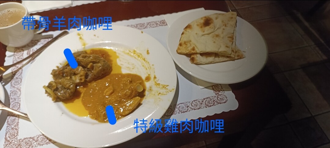 第二輪,雞肉咖哩好吃,肉質軟嫩不柴,帶骨羊肉讚讚,羊肉的鮮味很喜歡,只是真的偏油。中途還有用了雞肉炒飯不過沒拍到,雞肉用的是雞腿的骨頭尾部的部分,燉煮的十分軟爛以至於輕輕一含就能輕易的骨肉分離。
