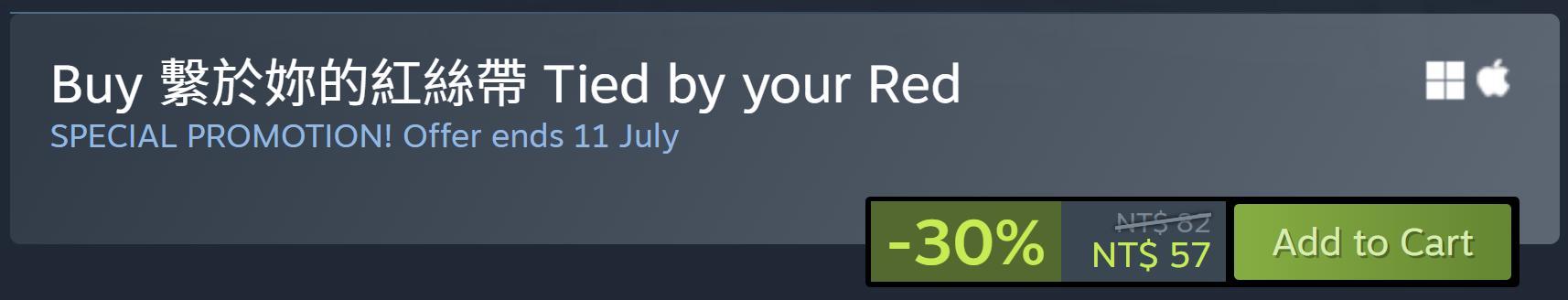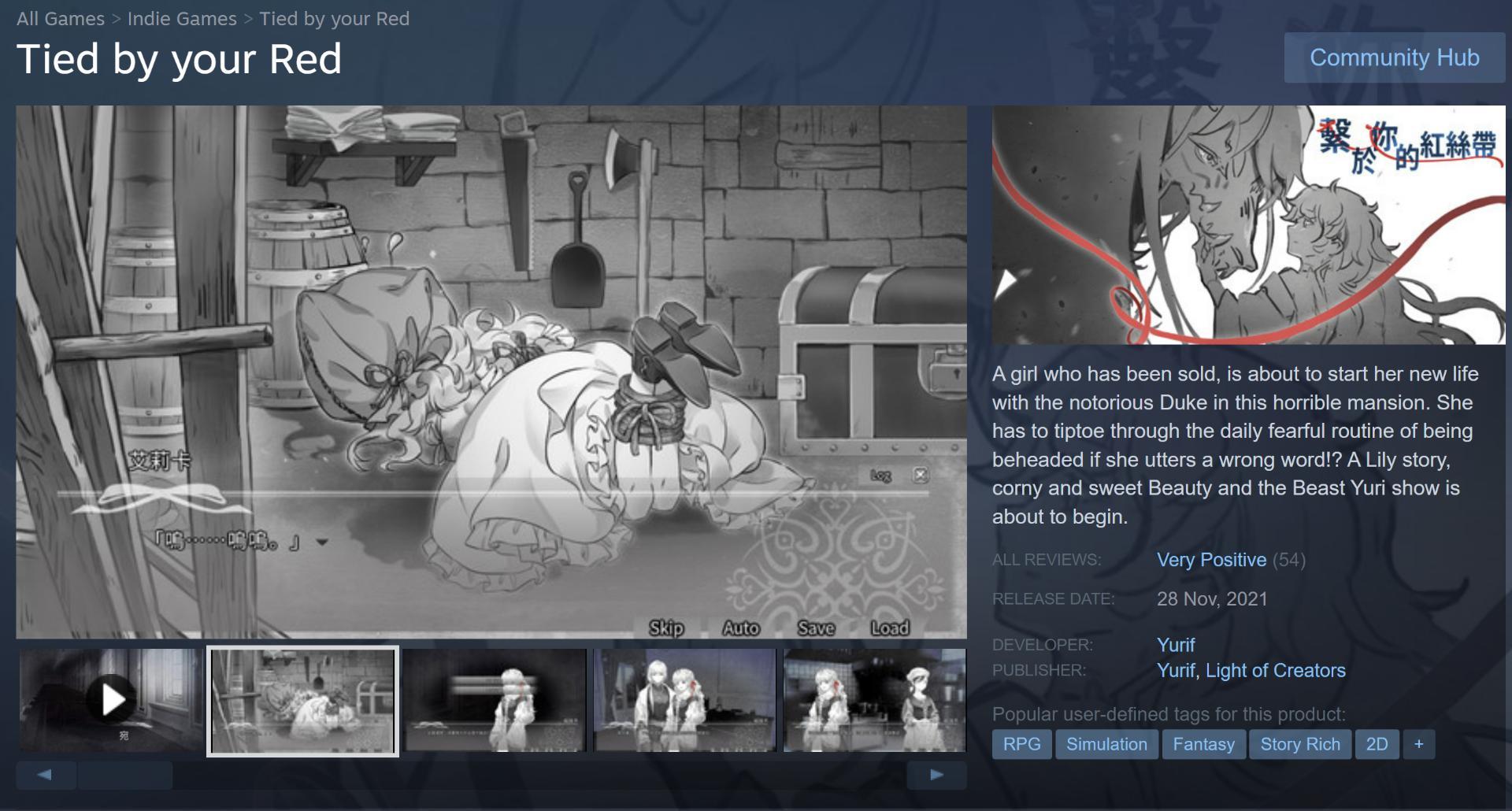 Yurif是一個專門製作百合遊戲的社團,並於2024年宣布成立百合貓有限公司。而《繫於妳的紅絲帶 Tied by your Red》(以下簡稱紅絲帶)是Yurif百合遊戲社團於2021年末上架的百合遊戲,當初所允諾的英文版,終於在2025年6月29日宣布上線,除次之外還加入了簡體中文版,時間上剛好參與了本次Steam的夏日特賣,同時也有30%折扣。