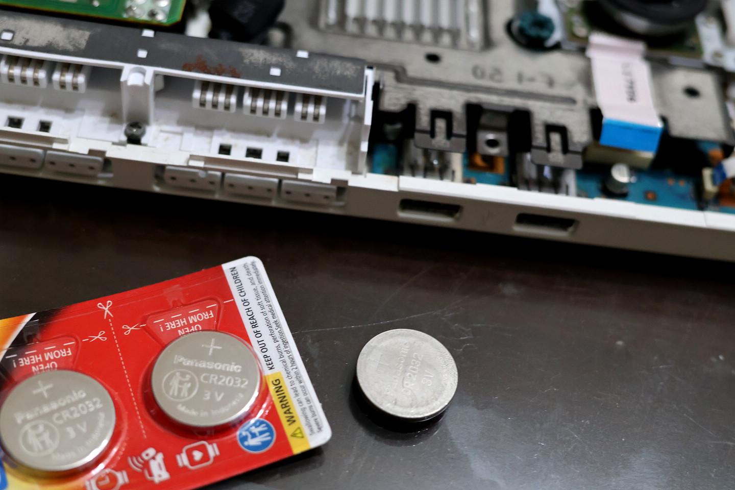 拿出這顆水銀電池才發現跟我買的是同一款(國際牌 CR2032),畢竟商店會賣的水銀電池品牌本就不多,建議安裝時盡量用新的(出廠日期在今年),免得裝沒多久就沒電,還得再來一輪增添麻煩