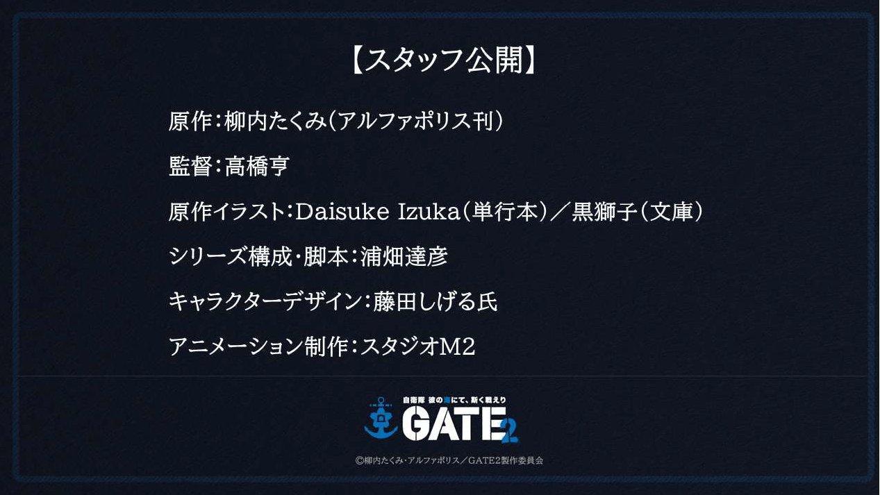 《GATE 奇幻自衛隊》(日語:ゲート 自衛隊 彼の地にて、斯く戦えり)是由柳內巧所創作的日本奇幻小說。另有改編漫畫。電視動畫第一期在2015年7月4日播出。第二期於2016年1月8日播放。自動畫播出以來迎來10週年。改編自累積銷量高達730萬冊的人氣輕小說《GATE》系列,全新作品《GATE SEASON2 自衛隊 在彼之海如此戰鬥》將推出電視動畫!本作的舞台由陸地轉向海洋。以異世界的遼闊大海為舞台,描繪令人屏息的海戰與緊張的外交等壯大的軍事奇幻故事。