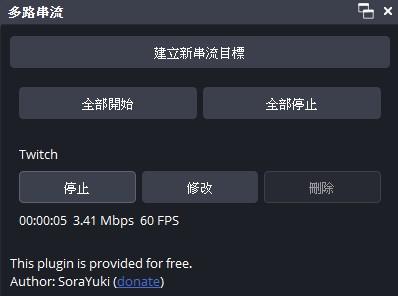 安裝成功的話OBS上方的[停駐視窗]會多出一個[多路串流]