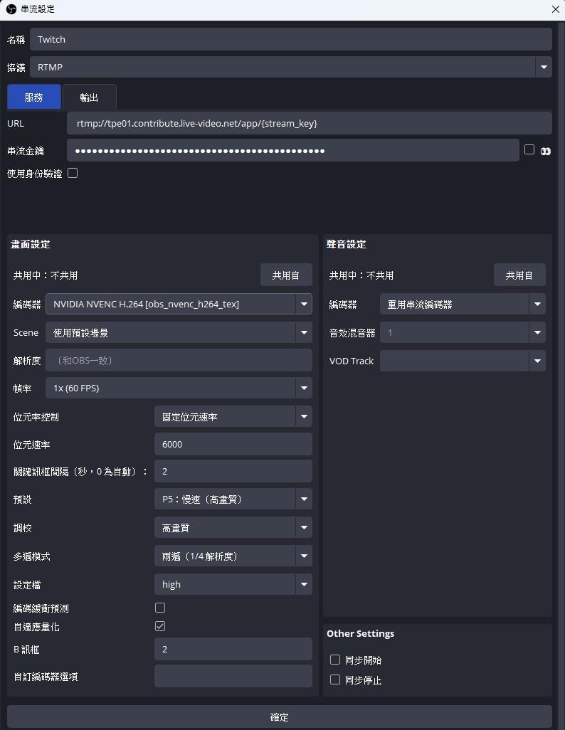 解決辦法1: 都使用同樣編碼的h.264/1080p來實況(2k會導致twitch跳不支援)
