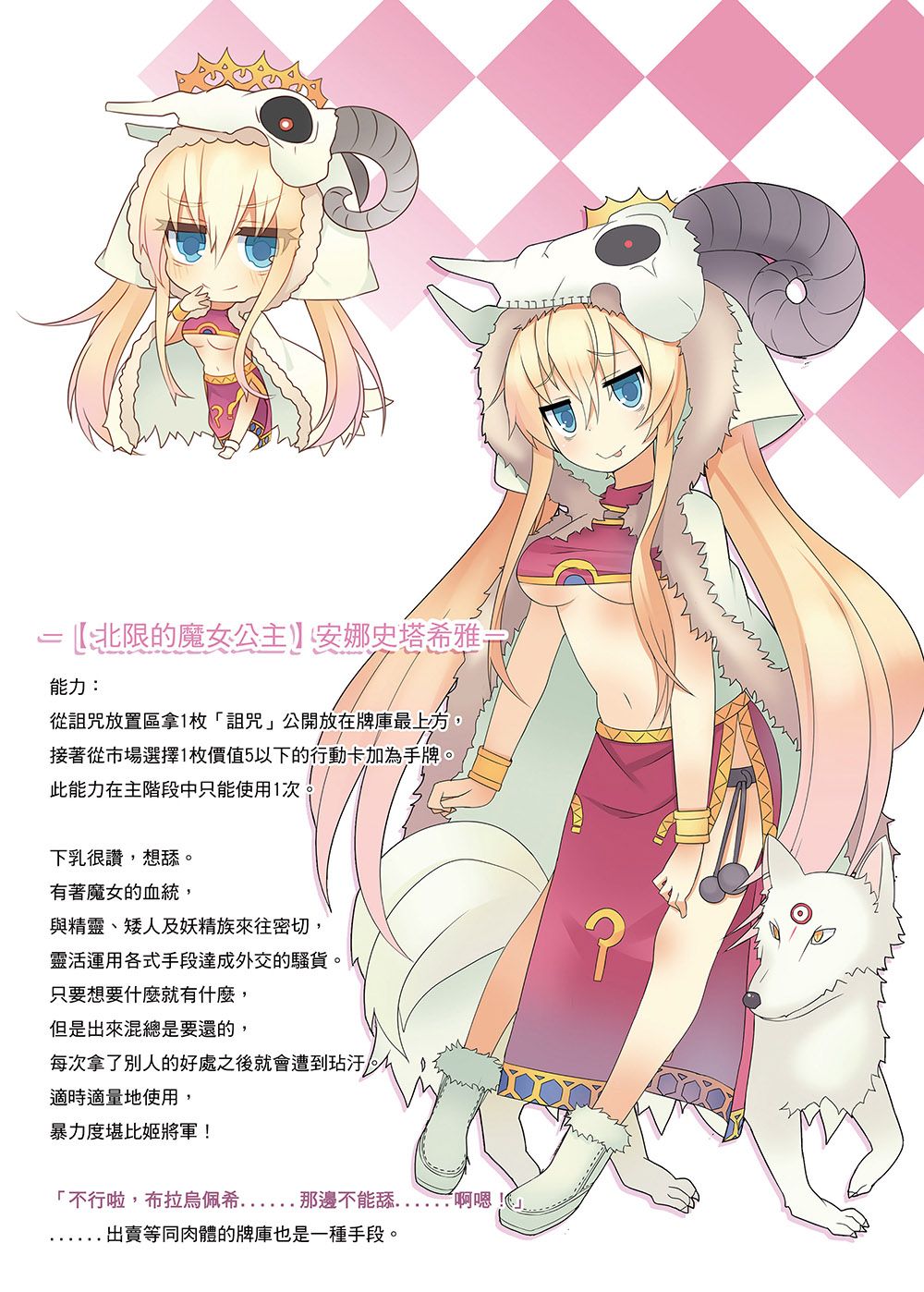 換句話說,前期可以拿來燒農村灑詛咒,後期可以改燒她來把詛咒處理掉,好一個被吃乾抹淨的悲情魔女。可惜,因為主要功能是撒詛咒的關係,本身向性其實跟安娜非常差就是了。