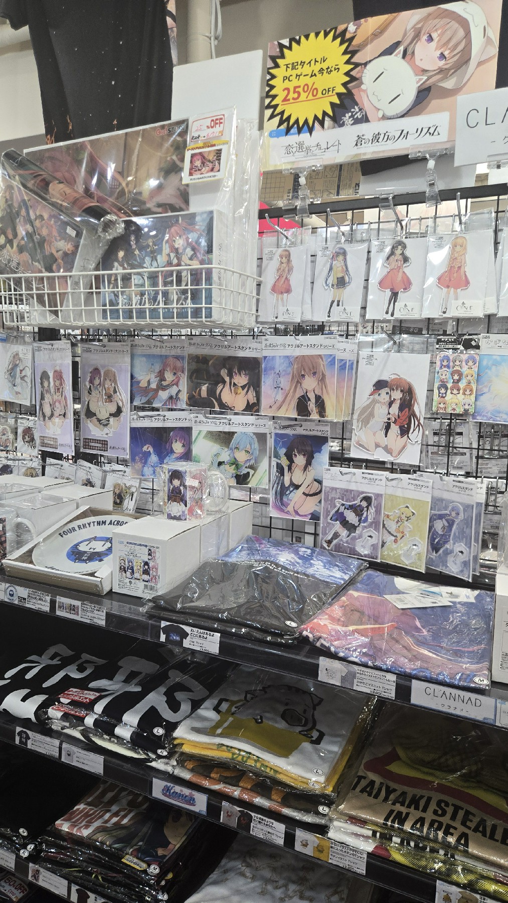 以痛衣和各類小周邊為主,都有不論是找動畫或Galgame都很好逛