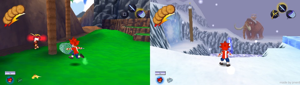 從 PS1 移植而來的抓猴啦P,PS本家趣味性的代表作,拿著雷達在地圖上尋找猴子、追著跑還得準確揮網抓猴子,但是操作有夠幹難,不重製我是完全玩不下去。關卡設計蠻多元,玩點也很獨特,沉寂這麼久,覺得依然是充滿潛力的作品,等待重製或新作消息的那一天。