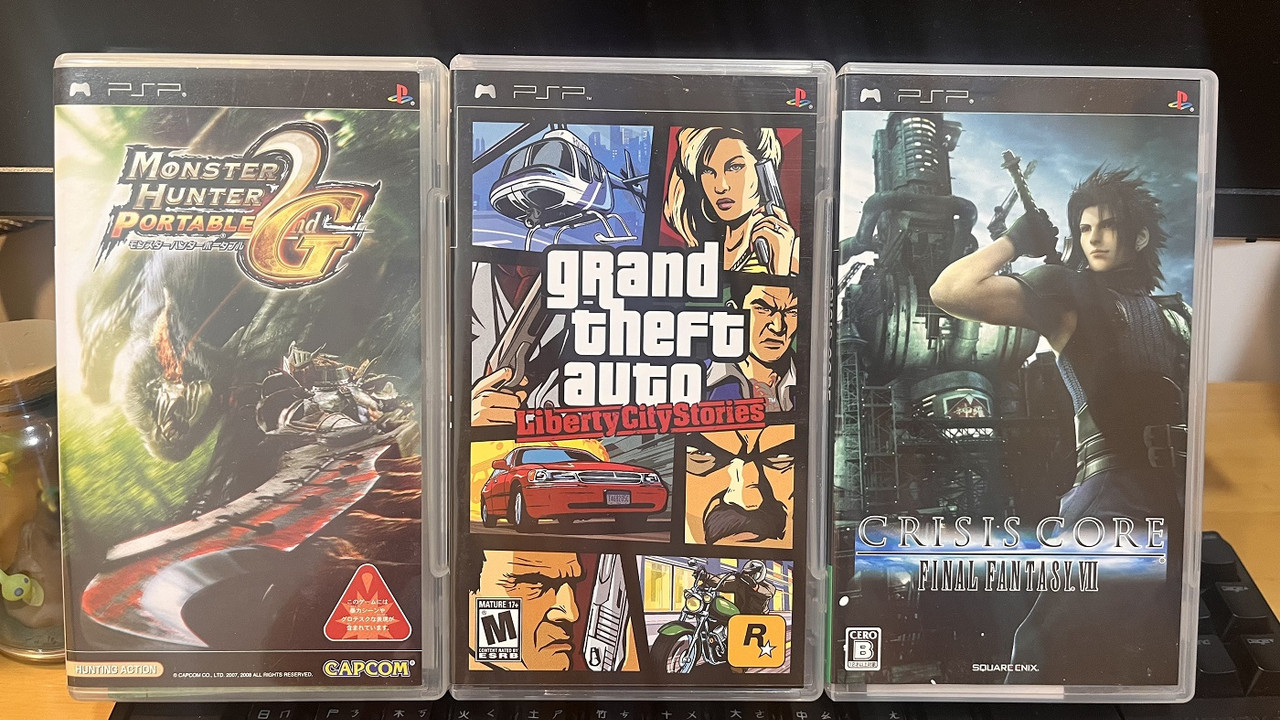 為了騰出空間給未來的 Switch2 遊戲片,最近整理一番書櫃中的電玩收藏。看到架上剩下的六款 PSP 遊戲,頓時想起國中時期的遊玩經歷;寫了這麼多老任遊戲的文章,就藉這六片遊戲,來一篇簡單的 PSP 閒聊回憶錄吧。只有文字敘述乾了些,找些網路上對應的遊戲截圖,點綴意思一下。