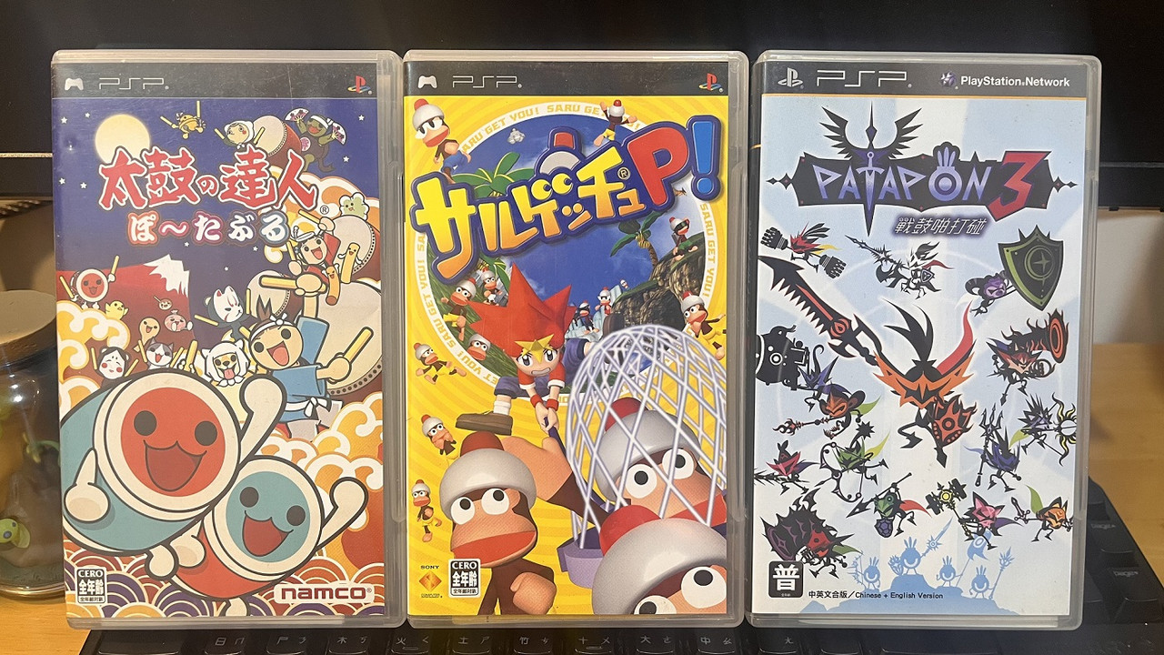 戰鼓啪打碰3,二代好像被我賣掉了。這系列也是 PS 上主打趣味的代表作,帶領被稱為啪打碰一族的生物,在非洲部落的氛圍之中,用節奏指令行軍打仗,非常好玩;小兵們會跟著玩家的指令哼歌,動聽有魔性,Fever!1+2 代重製就快出了,還有降低拍點難度的選項,還有出在 NS 上,棒到不行,已預購。