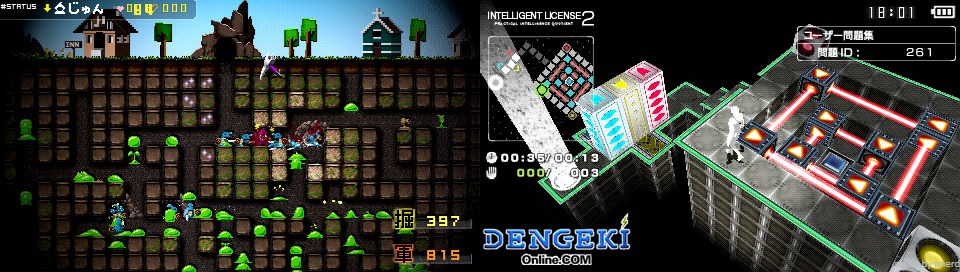 勇者實在太囂張,玩家是魔王挖地底滋養出各種怪物魔獸,抵擋來犯的"勇者",但我記得沒玩多久就卡關XD,隨機性過強,養不出強力的龍很容易翻車。理性執照很像現在獨立遊戲會出現的益智闖關遊戲,有點像是更進階的倉庫番遊戲,搬動方塊、控制雷射機關、開啟抵擋的障礙等等。