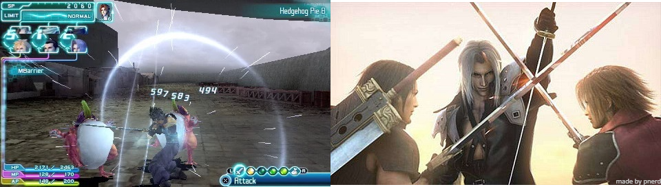 CCFF7,是我第一次接觸 FF 作品。劇情導向的遊戲,邊看網路上的翻譯邊玩,半即時與隨機性角子機的戰鬥機制,那時覺得很好玩;現在雖有重製,倒也沒有想要重溫的慾望,就讓它停留在回憶之中。印象最深的是布袋戲長髮男賽菲羅斯跟隊友們較勁的過場演出,帥的離譜。