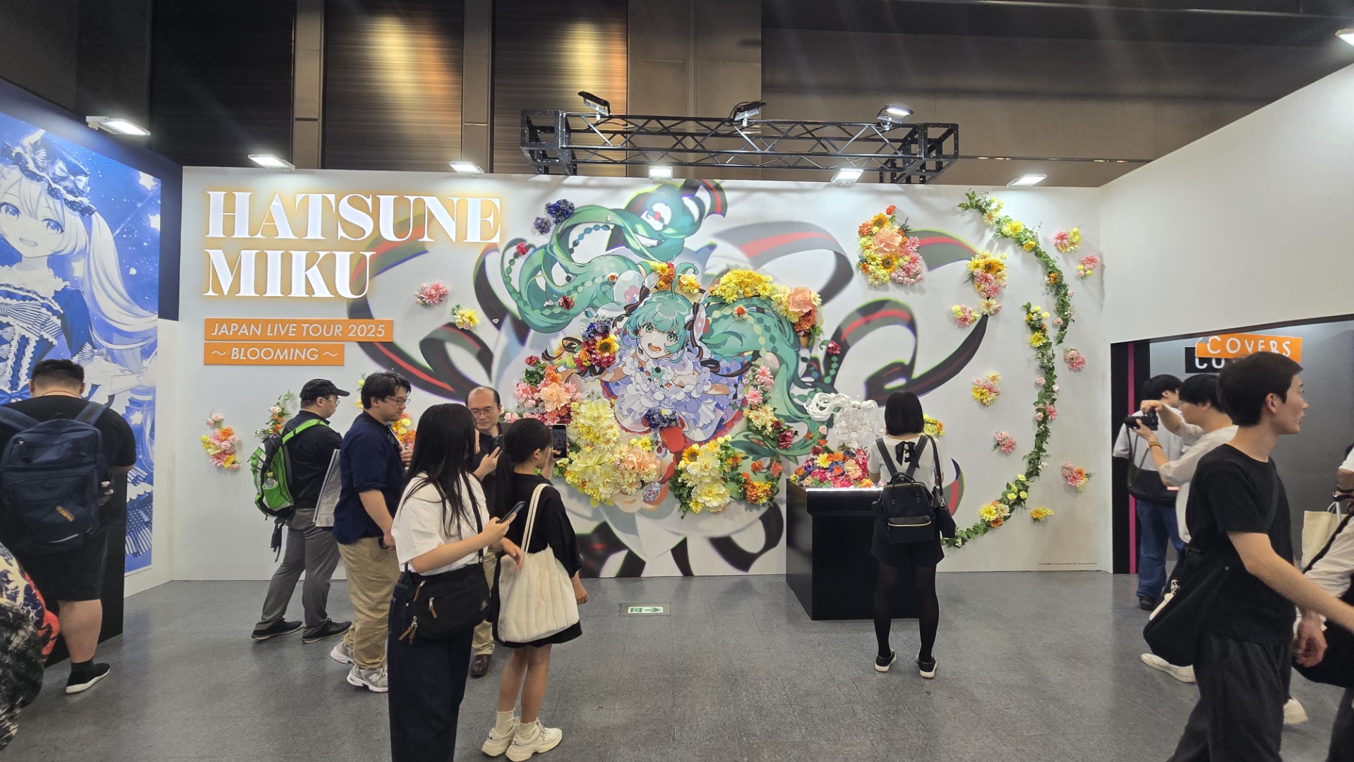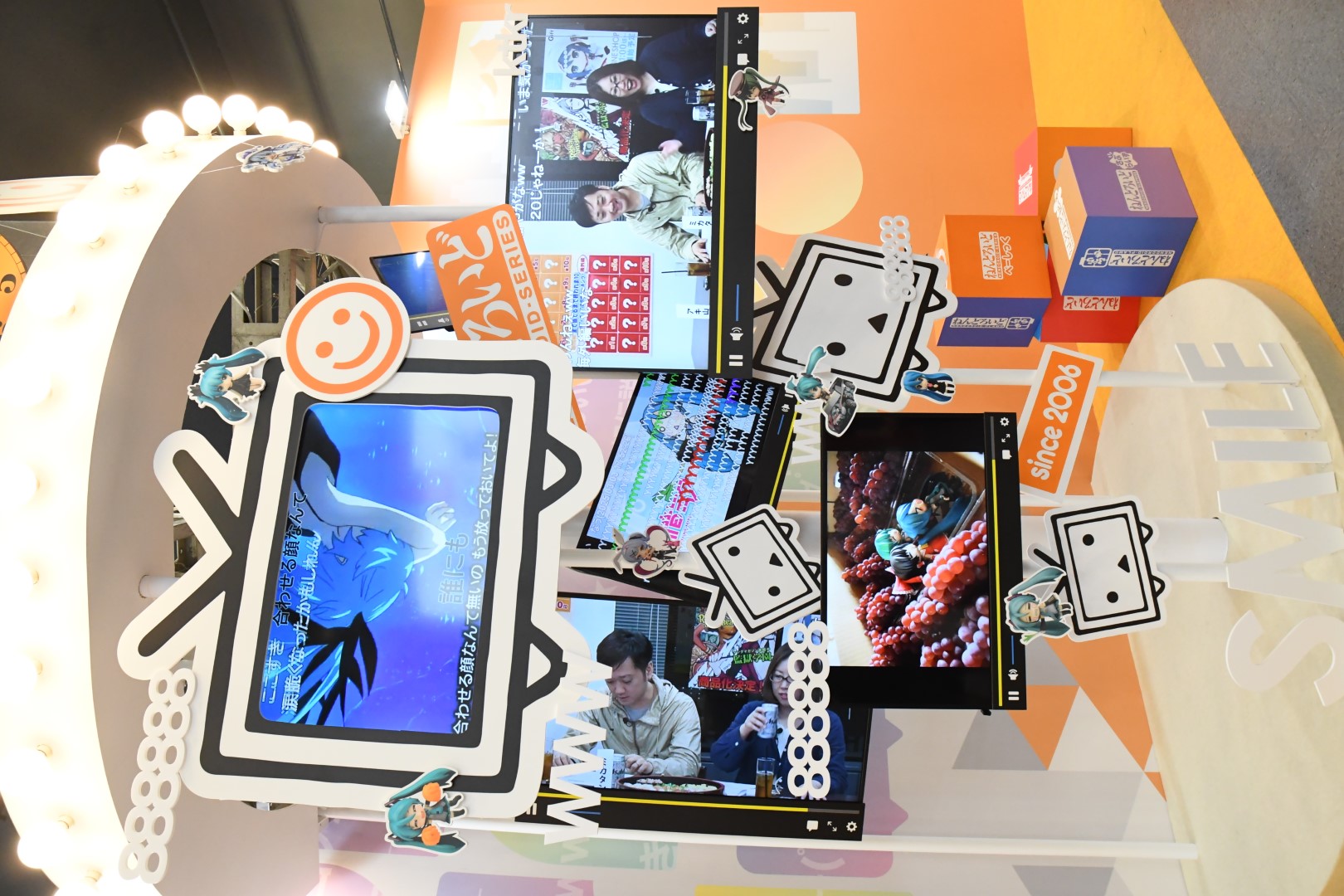 一進門口就能看到好幾個螢幕,播放著NICONICO上初音早期的VOCALOID殿堂曲
