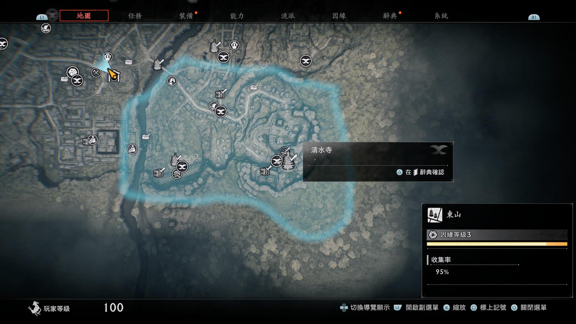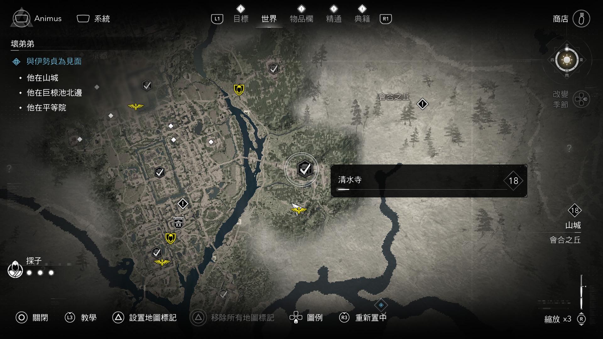 (附註:其實刺客這個位置對應現實地圖就是五條大橋,如果有看影片可以發現,浪人有把五條大橋連接到清水寺這一段做出來,刺客則是直接略過這一段,過了橋就是到清水寺了)