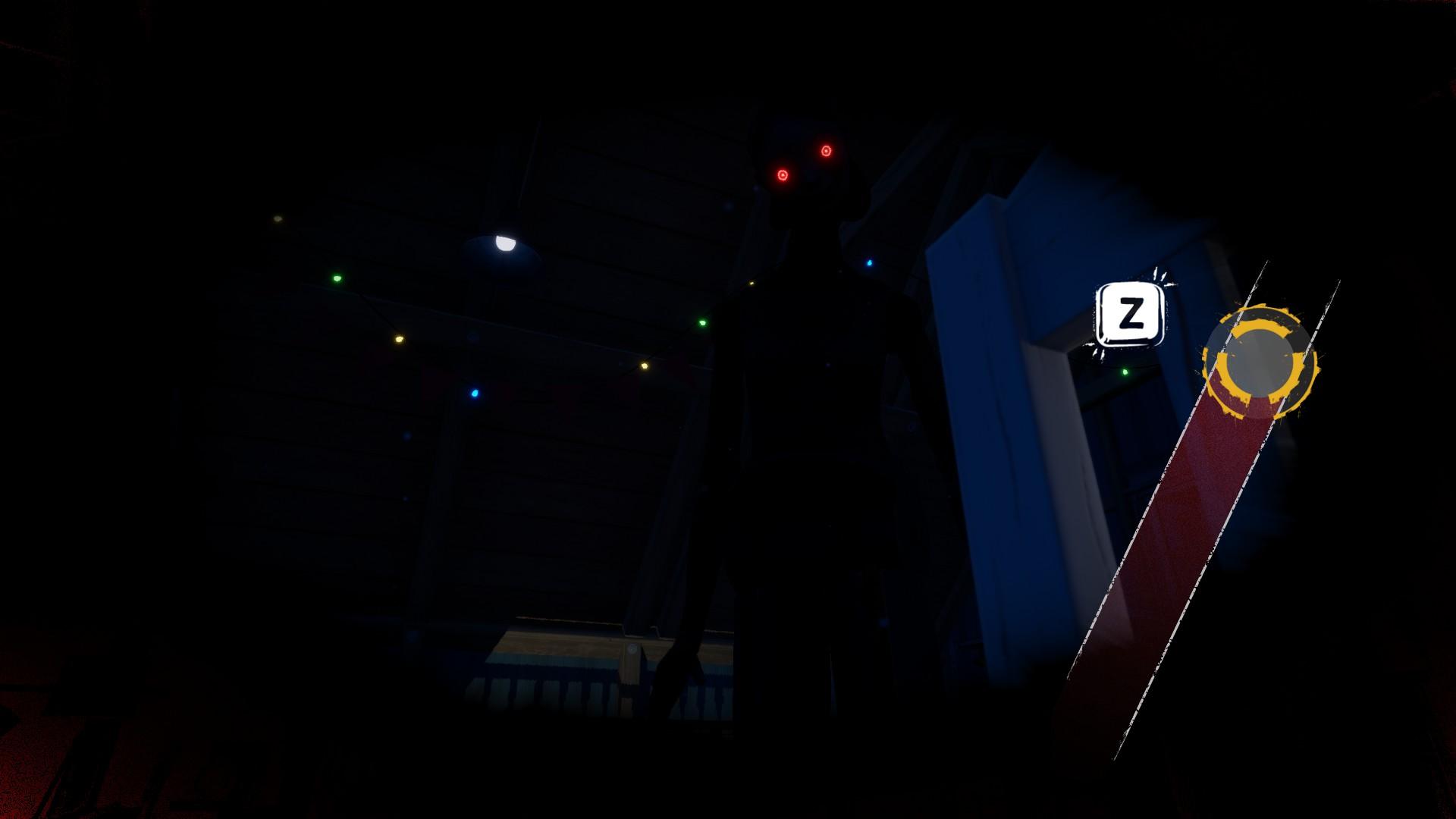 然後這邊題外話,媽媽偶爾會直接檢查你是否有入睡,這時候會進入一個小小的節奏遊戲,其實蠻簡單的,只要跟著節奏按Z就可以;但要注意的是眼睛閉眼久了,主角的視野會變得模糊,會需要一段時間才會恢復,這期間很容易會遊戲失敗,因此如果是遊玩時確定媽媽轉頭離開後,可以大膽的直接玩,第一關還不太會有突然間媽媽轉頭回來看你,除了最後五關上閣樓後偶爾會轉頭。