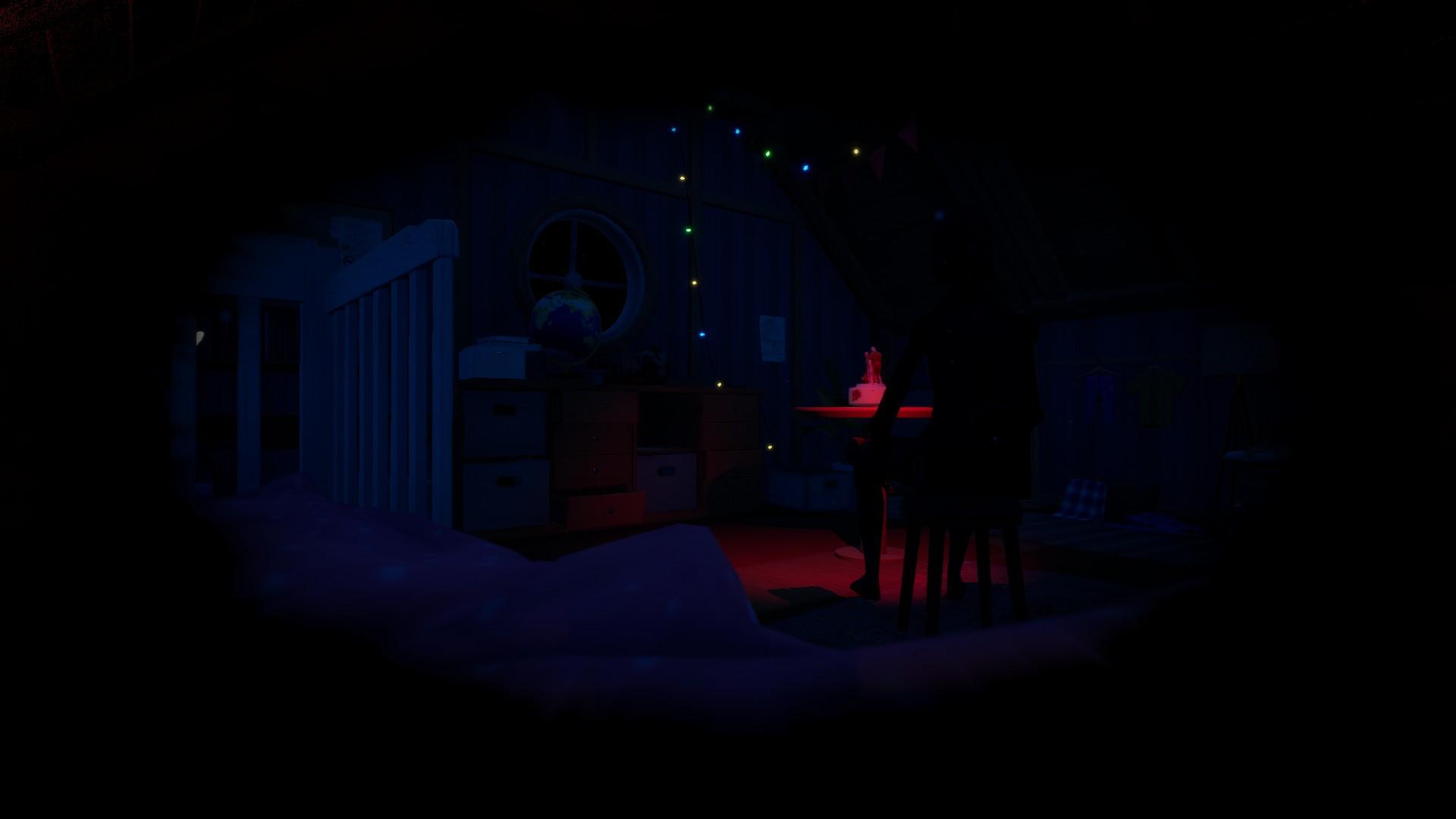 第一關的遊戲視角還算窄,因此能夠比較快速分辨媽媽現在在哪裡,且第一關因為設計是我們在閣樓睡覺,因此也可以透過腳步聲先預判媽媽是不是要上樓了,這時當然是先躲起來再說啦!遊戲約莫玩到第15關開始,媽媽會直接到樓上走來走去,同時間整個遊戲視線會變得異常昏暗,第一關其實媽媽隨機轉頭還不平凡,因此算是比較好猜,但最難的我認為還是在小遊戲裡要通關。