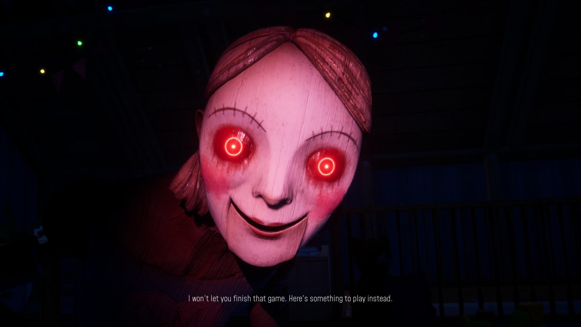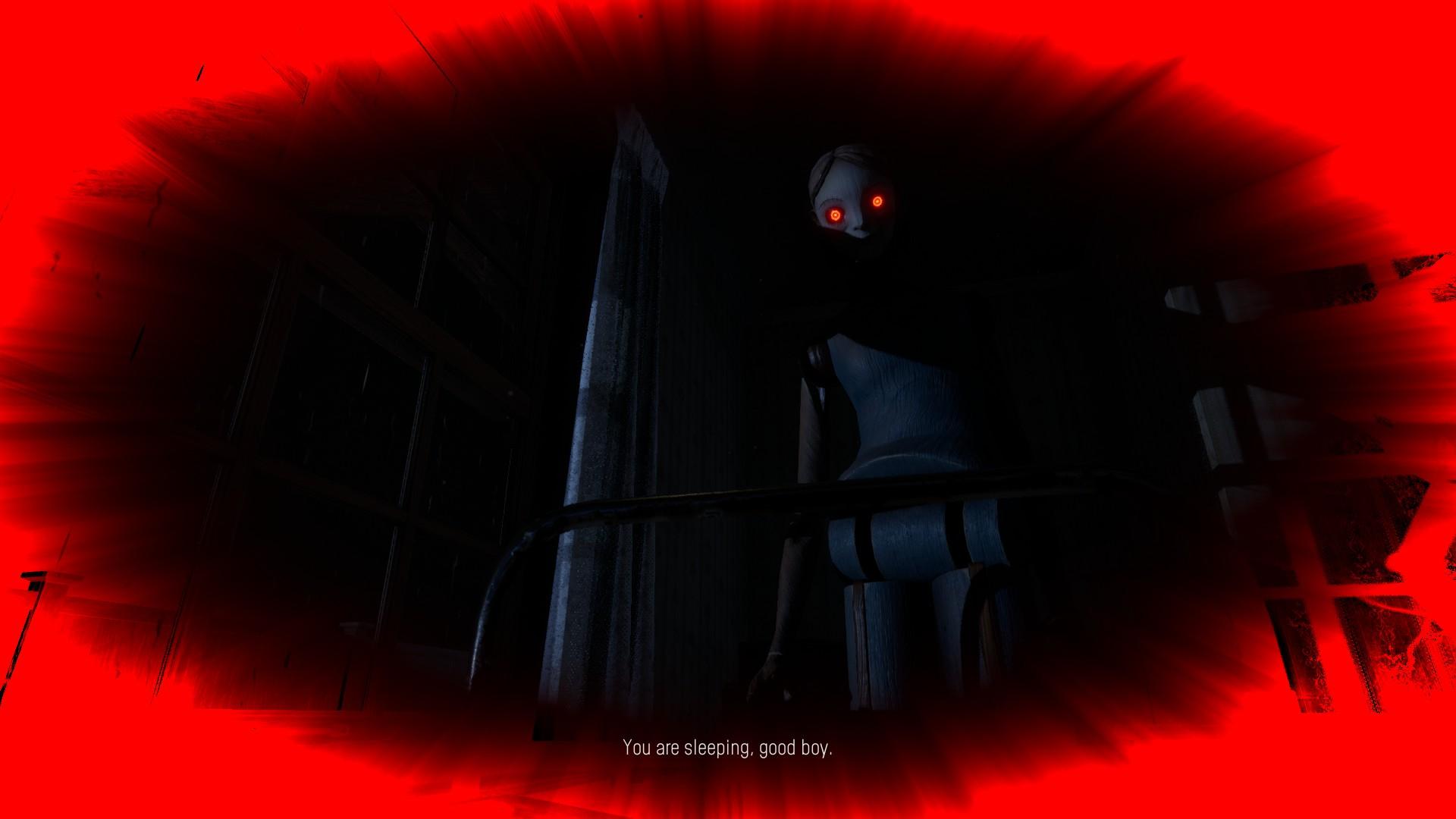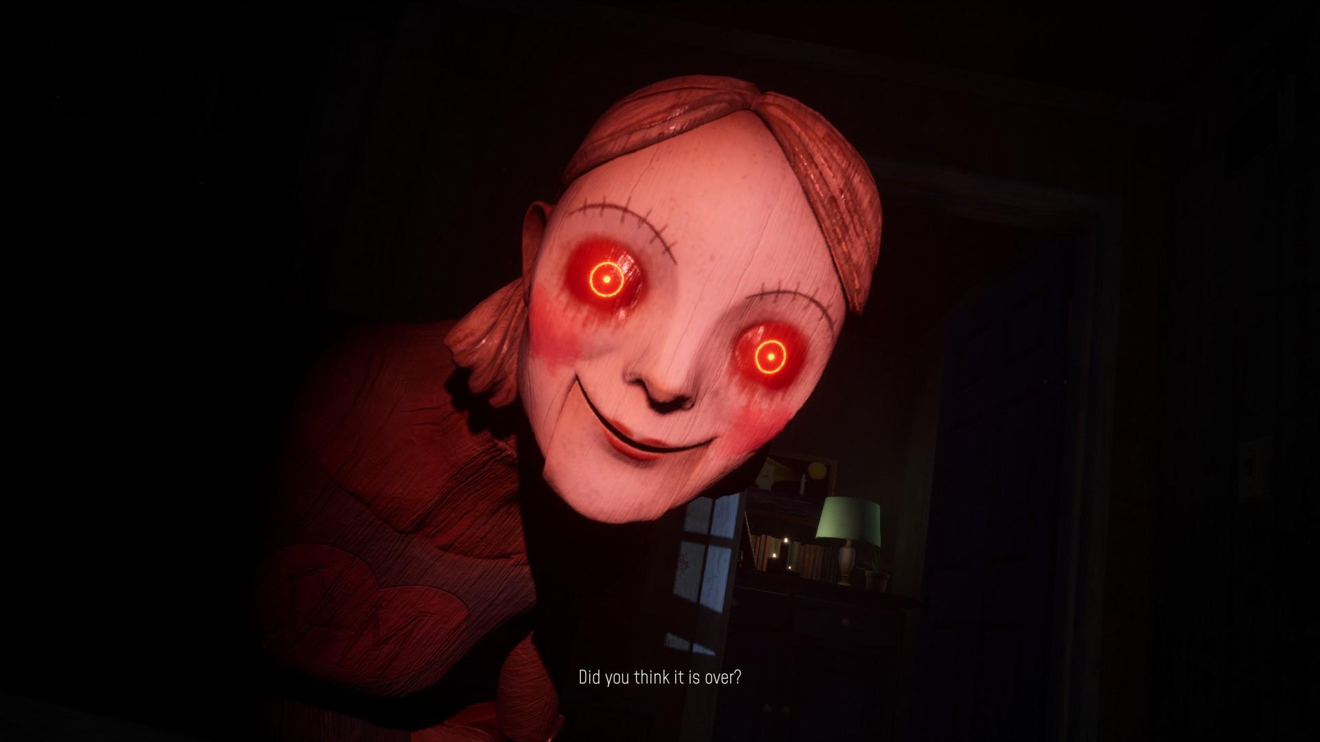 整體遊戲氛圍其實沒有那麼恐怖,主要的嚇人方式就是很經典的Jump Scare,遊戲梗概為玩家扮演一名小朋友,在晚上想要偷打電動遊戲,但同時要躲著不能被媽媽看到,然後這個媽媽是一個木偶,最後打到結局好像有講到故事,但我其實沒有看得很懂,遊戲目前只有支援日文跟英文。還沒有中文介面,因此我就沒有太注意在講甚麼了QQ。