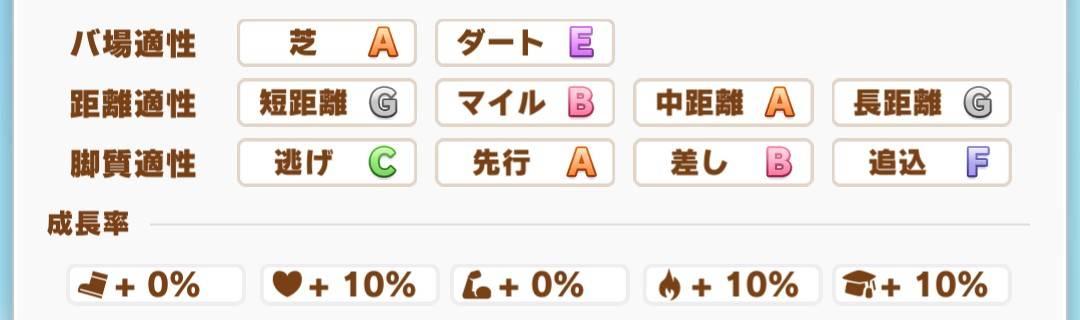 中距離先行馬,只是如果想要的話也能改造成逃或差馬,也能去跑英哩,不愧是生涯常改跑法的賽馬。