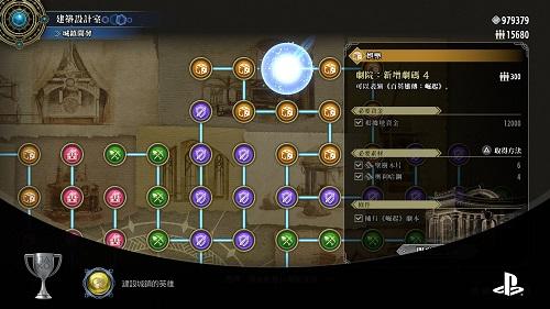 劇情「埃提維斯」收回後,根據地開發我只剩最後的劇碼,利用SL大法拿到道具屋稀有貨最後的劇本,全部面板都開發完拿獎盃。PS4版開發最後一個前紀錄給PS5版觸發用。