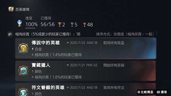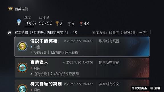 100%獎盃數: 共56個。