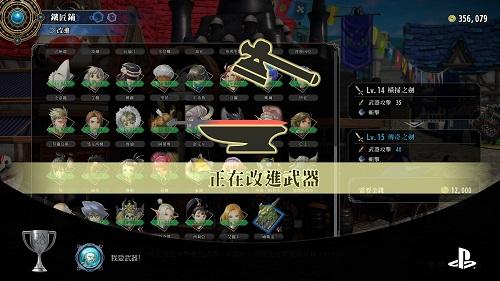 根據地開發出武器等級上限提升3,第一個人武器改造到等級15會跳編號31獎盃,注意PS5版也要第一個人觸發。全部戰鬥可用英雄武器改造到等級15,這要很多錢,如果完全沒改過,可能要存200萬,跳編號33獎盃,PS5版也要最後一個改造。鐵匠改進武器時,也達到100萬巴庫幣,跳編號32獎盃鐵匠,也包括買裝備、道具等花的錢。PS4版觸發後,開PS5版轉PS4版紀錄,找最近的紀錄再重新觸發。