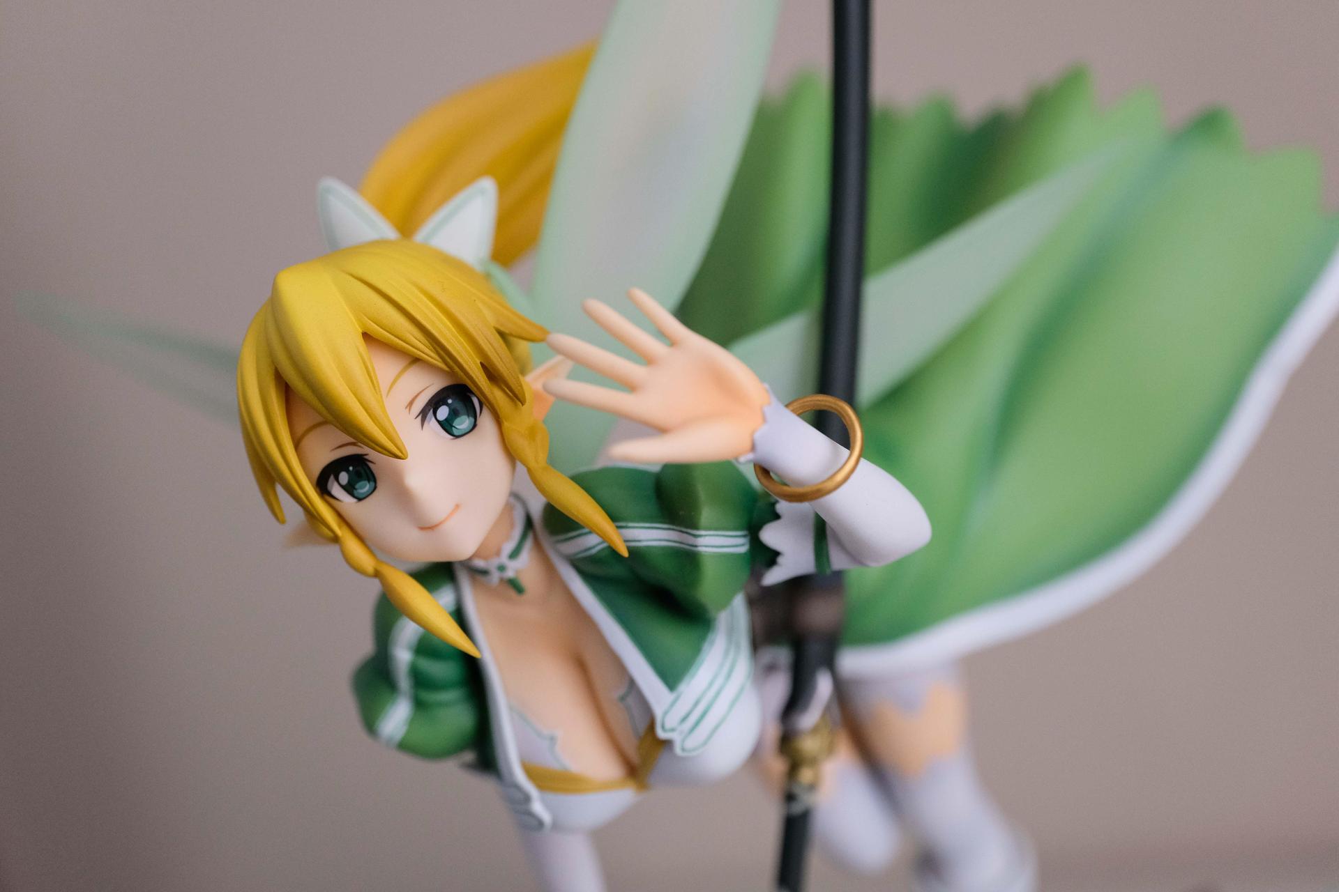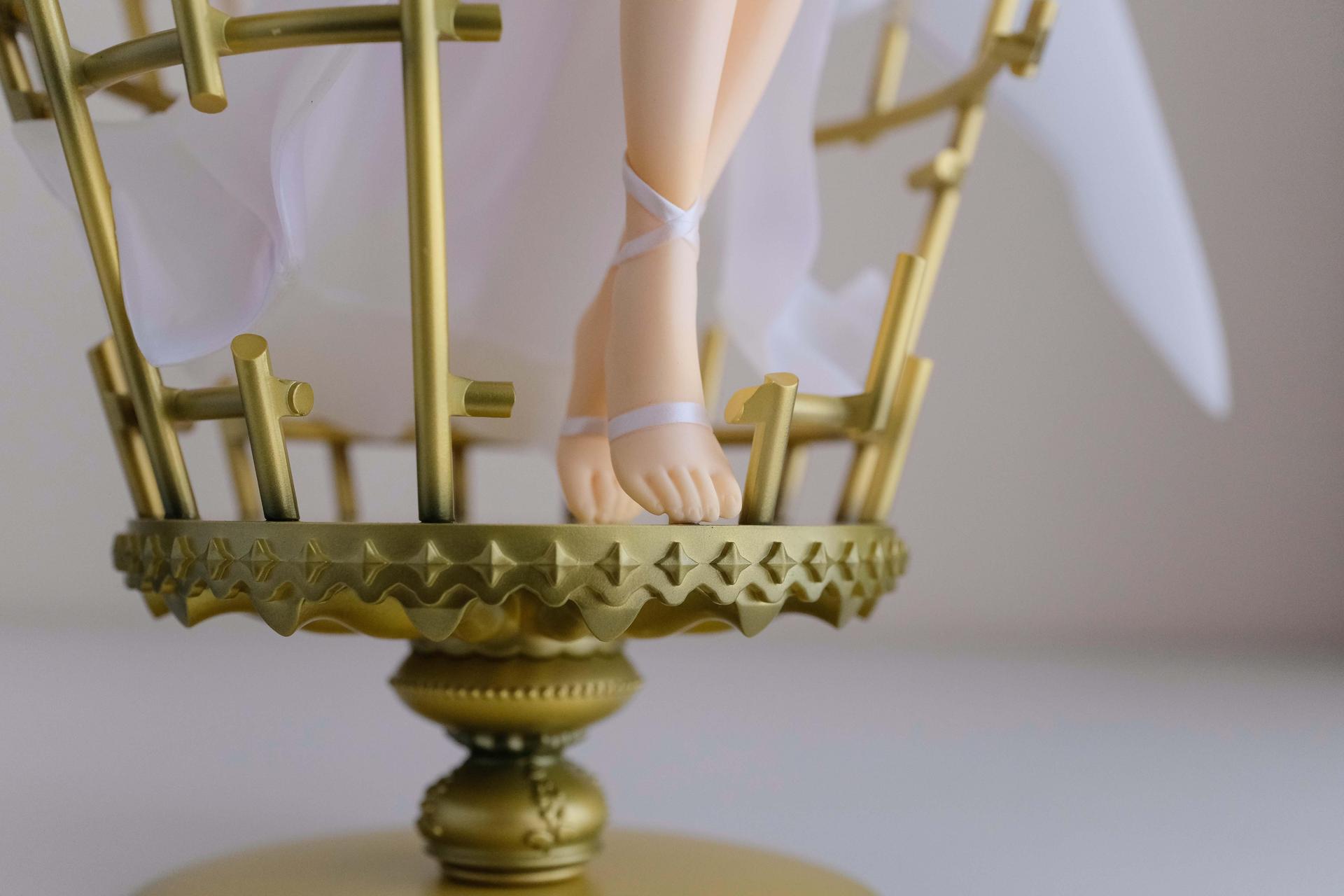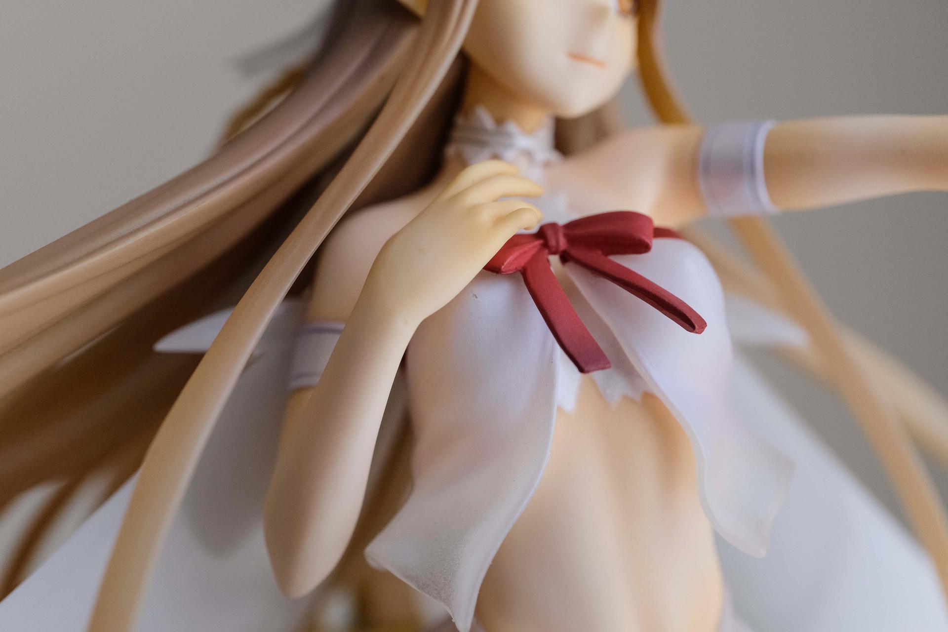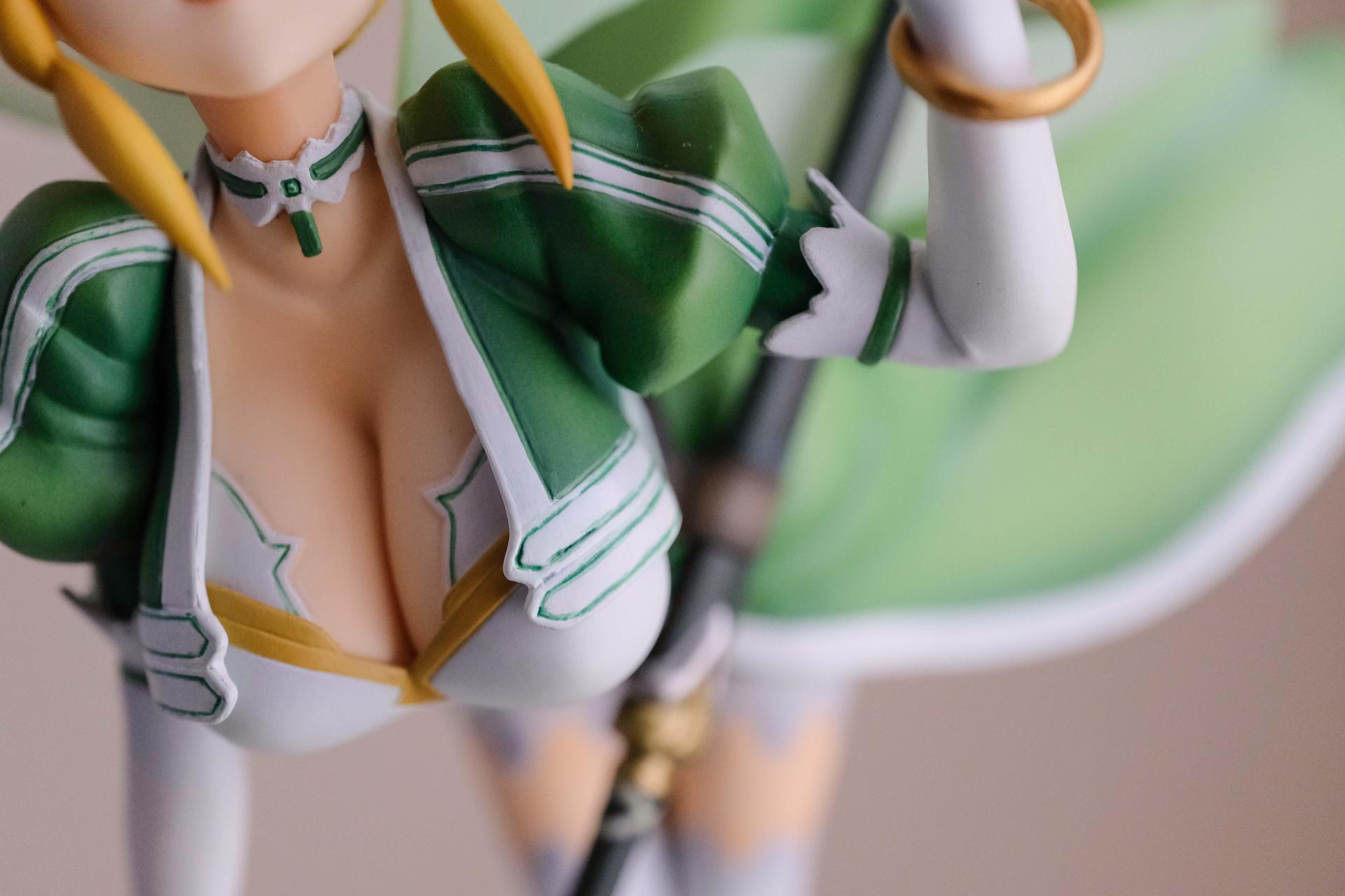 再來說亞絲娜,面相比較普通,只有在特定角度下比較好看(或是說比較自然?),值得一提的是,無論是衣服或是漸層半透明的翅膀部分,在經過長時間的存放,仍完全沒有變黃,這點非常加分。至於底座部分,金屬的質感普通,不如莉法的底座精緻。整體來說,除非你像我一樣,一定要收藏一隻舊ALO篇的亞絲娜的話再買,否則亞絲娜的PVC仍有更多更好的選擇