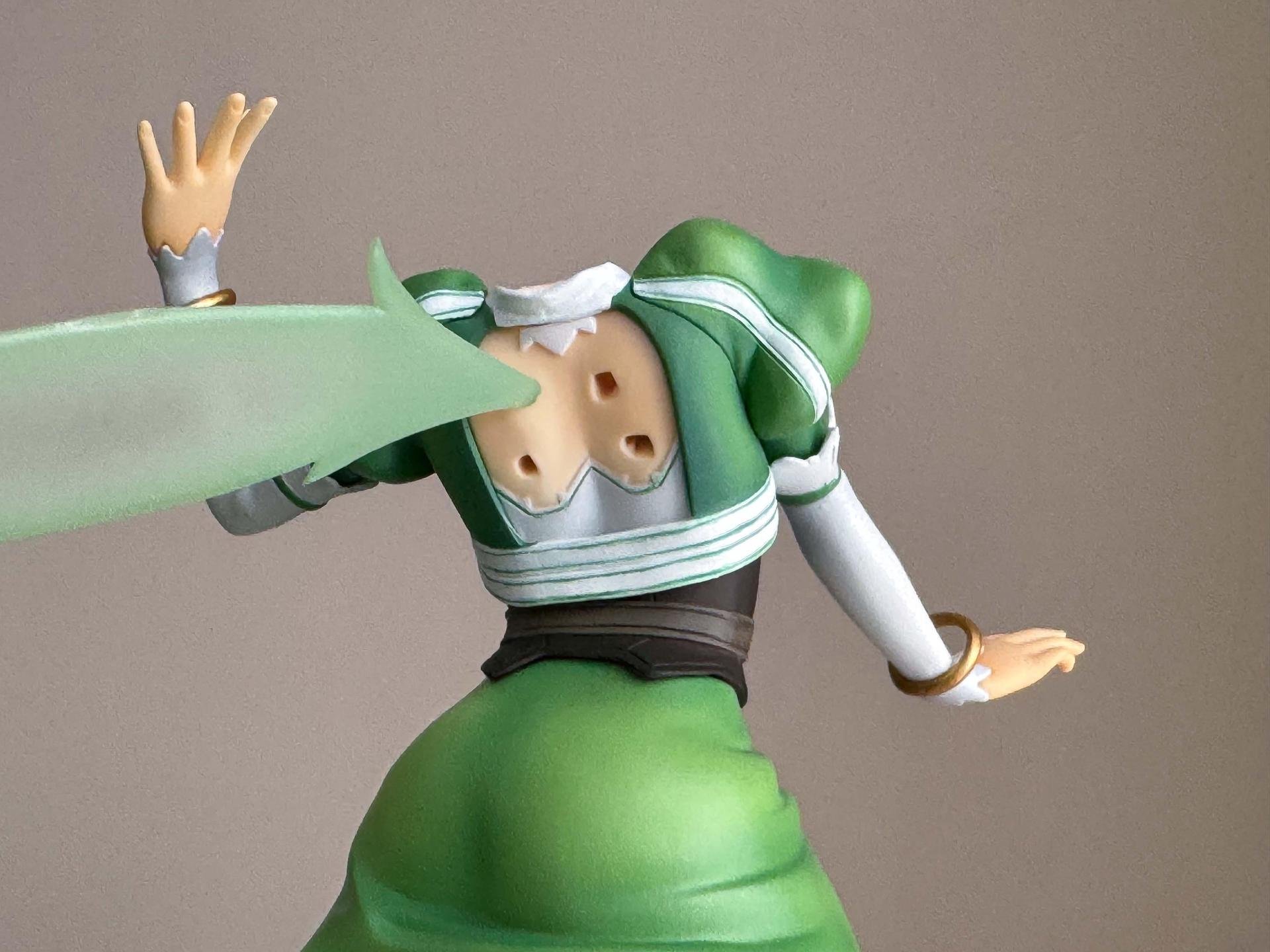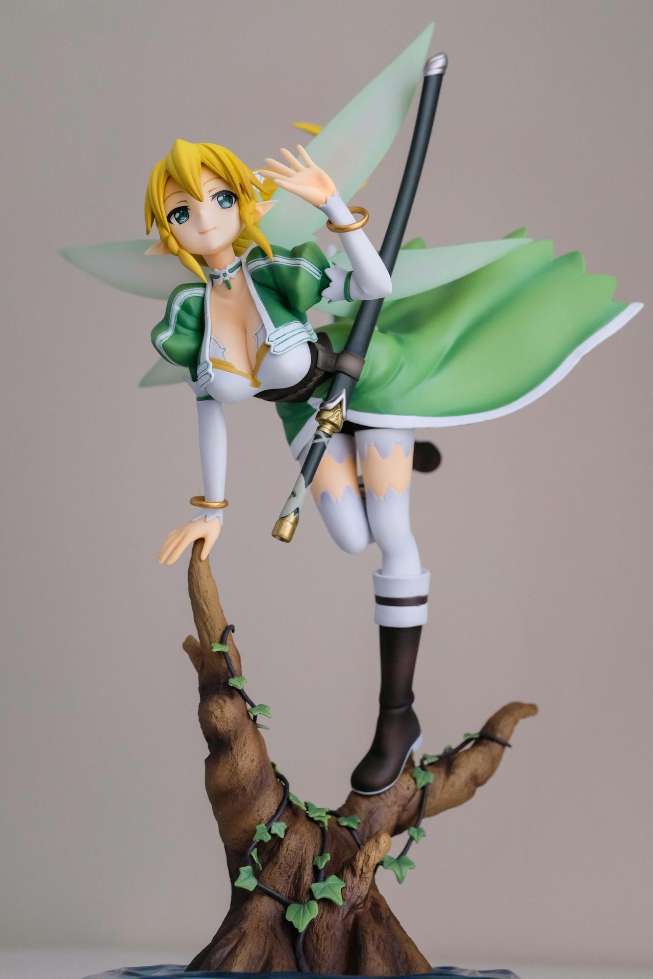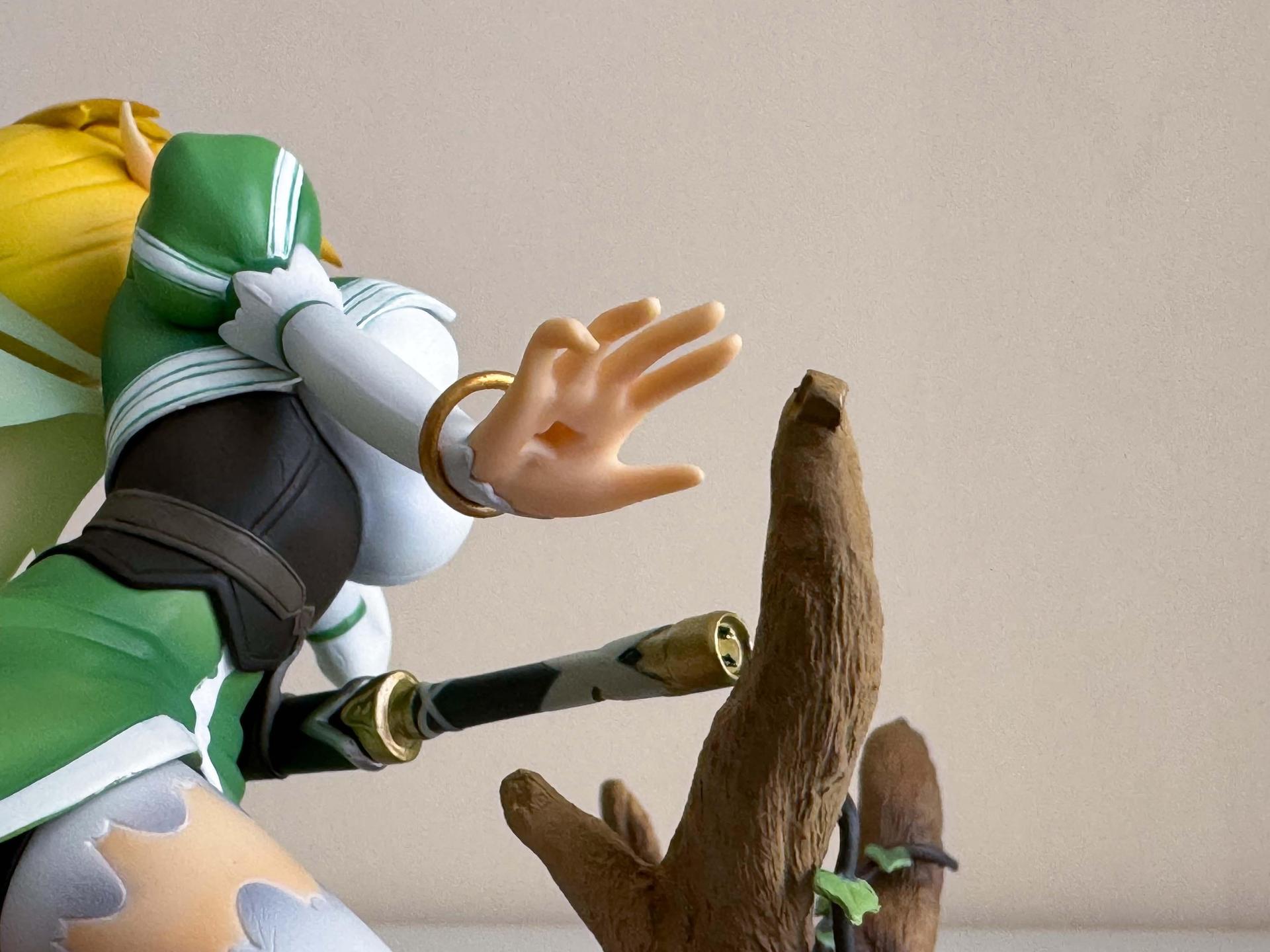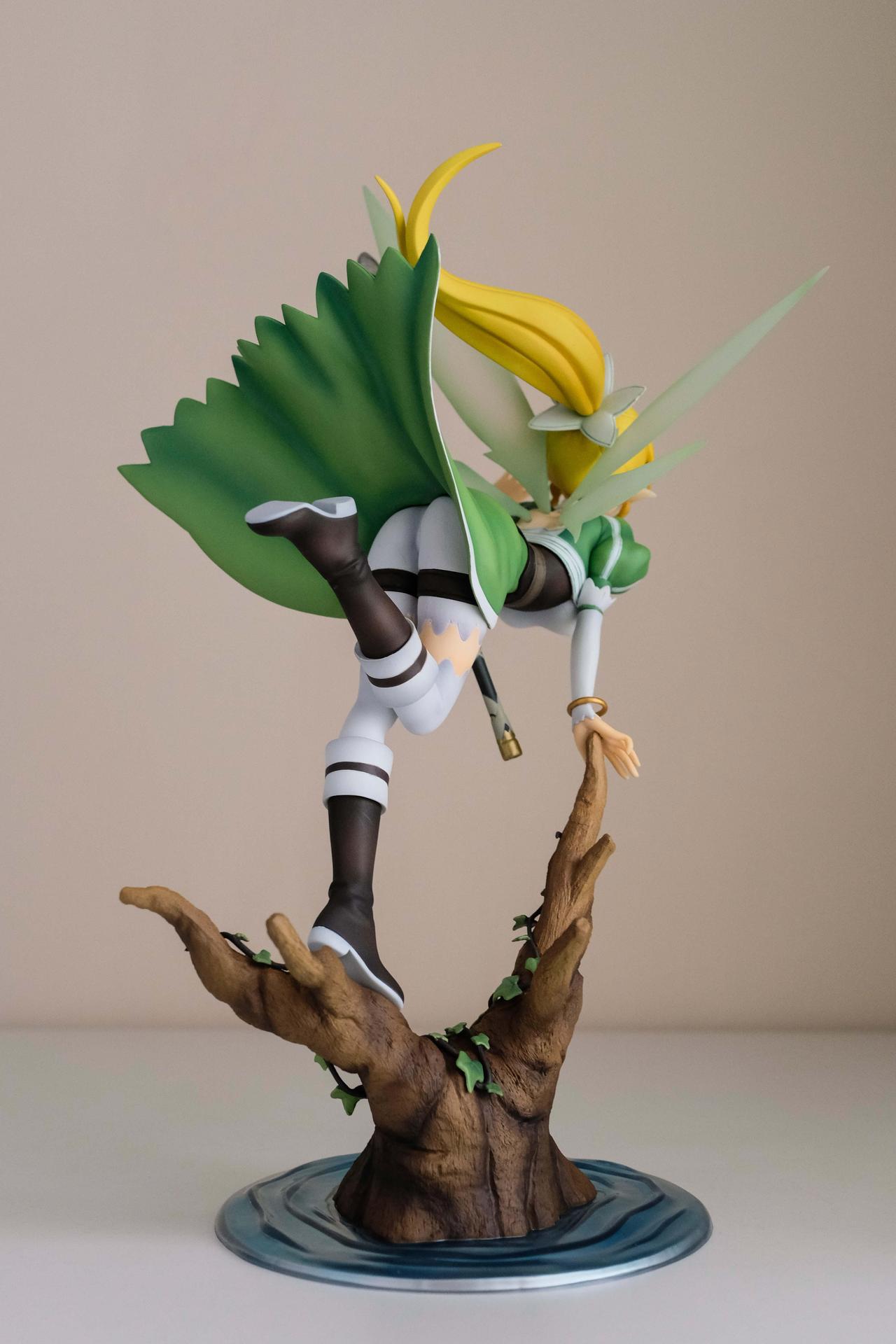 先說莉法吧,面相在壽屋的同時期產品中,屬於超水準表現,從任何角度看都好看,再配合活潑生動的降落姿勢,完全把莉法的可愛之處展露無遺。至於底座部分,無論是樹幹的塗裝或是藤蔓纏繞的效果,作工都相當細緻。整體來說,縱使有一些塗裝瑕疵存在,仍然推薦購買。