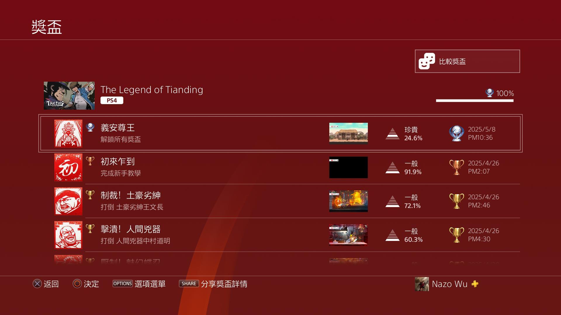 解鎖所有獎盃100%完成。