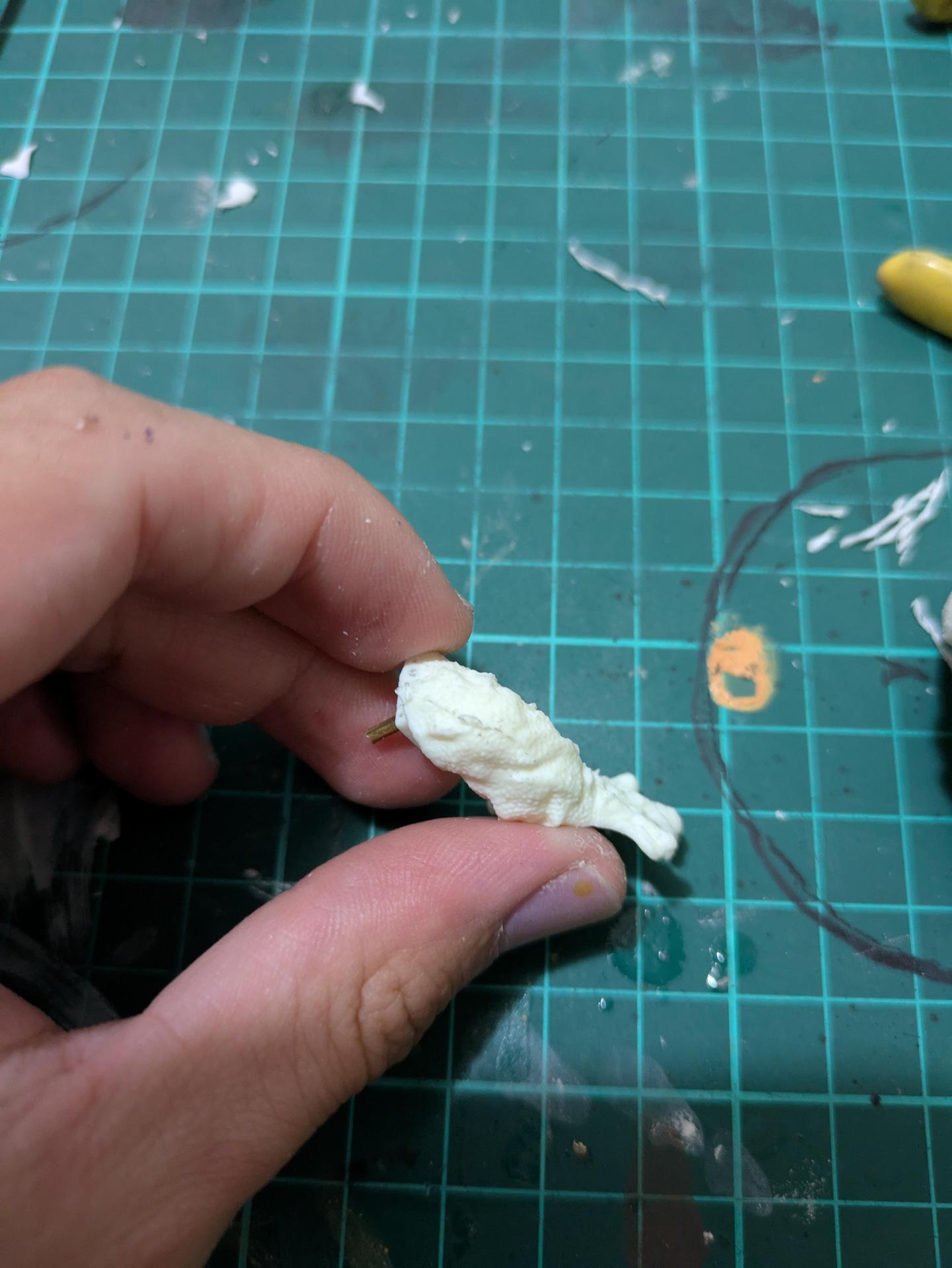 開箱後動工,分件一律打樁>分模線處理,因為本體有紋理所以要額外用補土修形狀,不然會被磨平不自然。