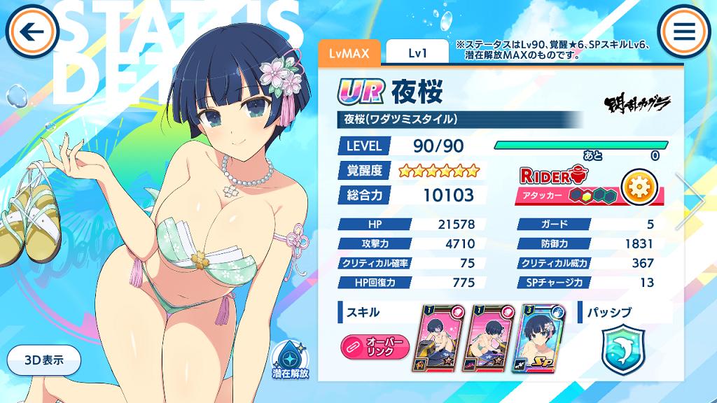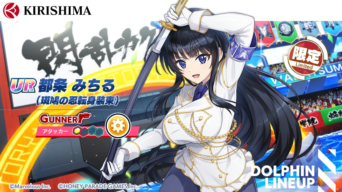 本次 PU 的新合作海豚為 UR 夜櫻(綿津見風) 夜桜(ワダツミスタイル) ;新合作 Cosplay 海豚則為 UR 都條滿(斑鳩的忍轉身裝束) 都条みちる(斑鳩の忍転身装束) 。※本卡池新海豚/衣裝為期間限定