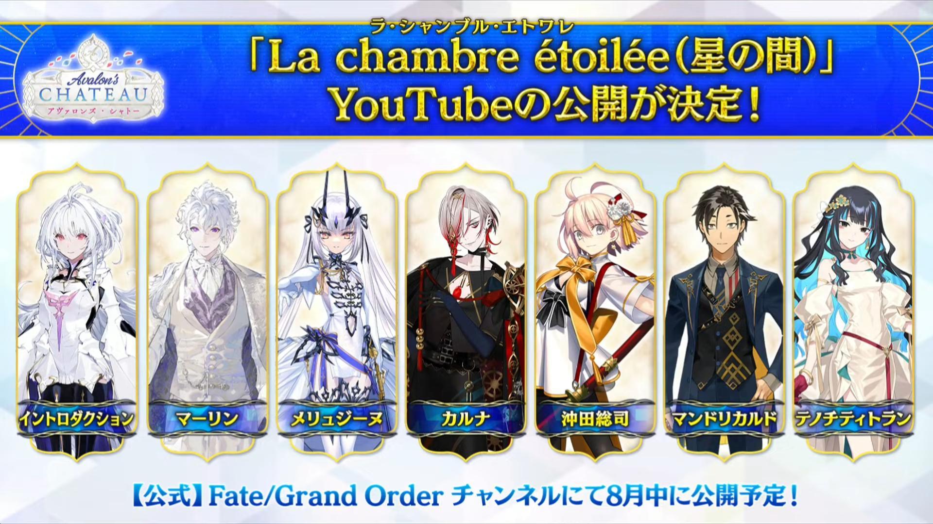 預定自 8 月中旬於官方 YouTube 頻道內將依序公開「FGO Fes. 2025」會場內供粉絲體驗的「La chambre étoilée(星之間)」。