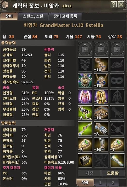 抗性: 火抗、冰抗、電抗、念抗、負面狀態抗性、移動速度(目前/上限)