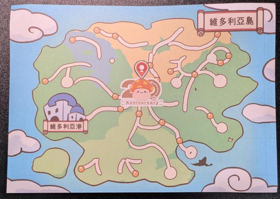 我花了一些時間排官方快閃店,因為跟著排隊直到 15:00 的梯次開放時,才發覺要拿整理券才能進去但我沒拿XD...排隊期間,我還玩了 AR 遊戲,官方名稱為「[維多利亞島]守護村莊的和平」。遊戲內容是在螢幕中,會有各式各樣的楓之谷怪物移動來移動去,要用手指頭點掉牠們並獲取分數,而最後分數前幾名的玩家好像有被頒發獎項 (我沒見證到)。至於 AR 遊戲的 QR 碼我是掃描活動單子上的,我活動單子還是在主要場地拿到的,竟然不是一入場就拿到的...