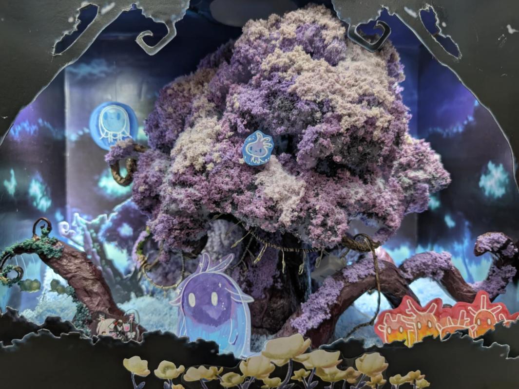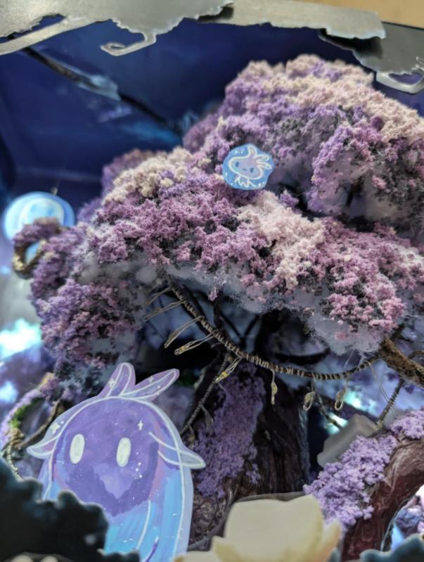自製的阿爾卡娜樹;我也詢問攤主製作方法,她說樹葉是海綿泡白膠液後打碎再上色的。