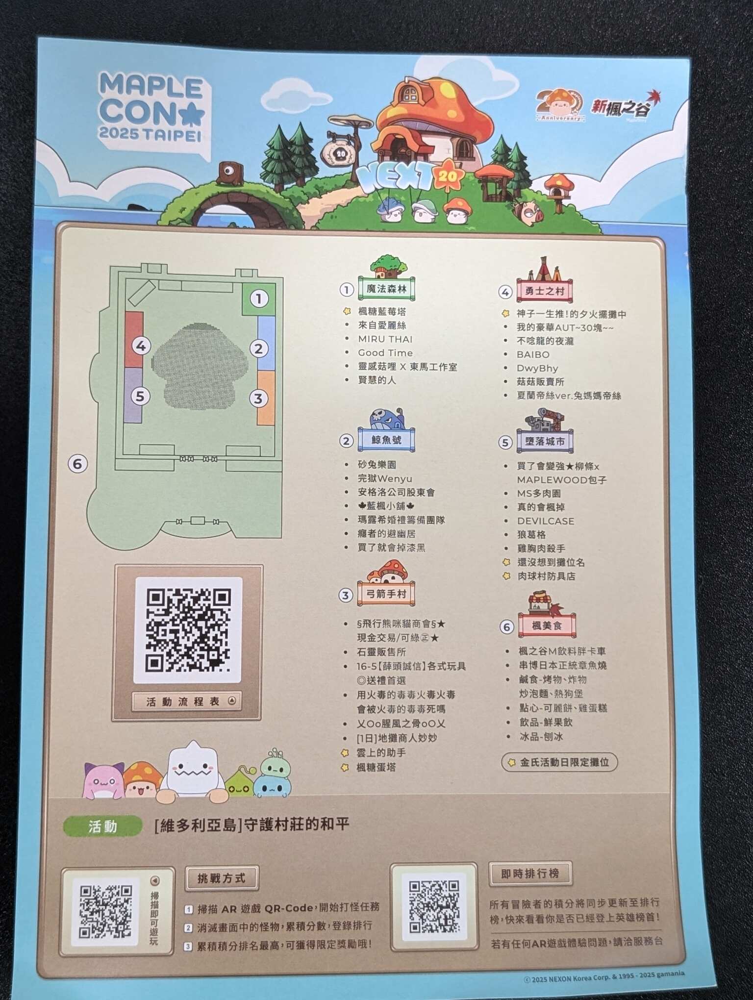 活動單子上的攤販介紹和 AR 遊戲 QR 碼