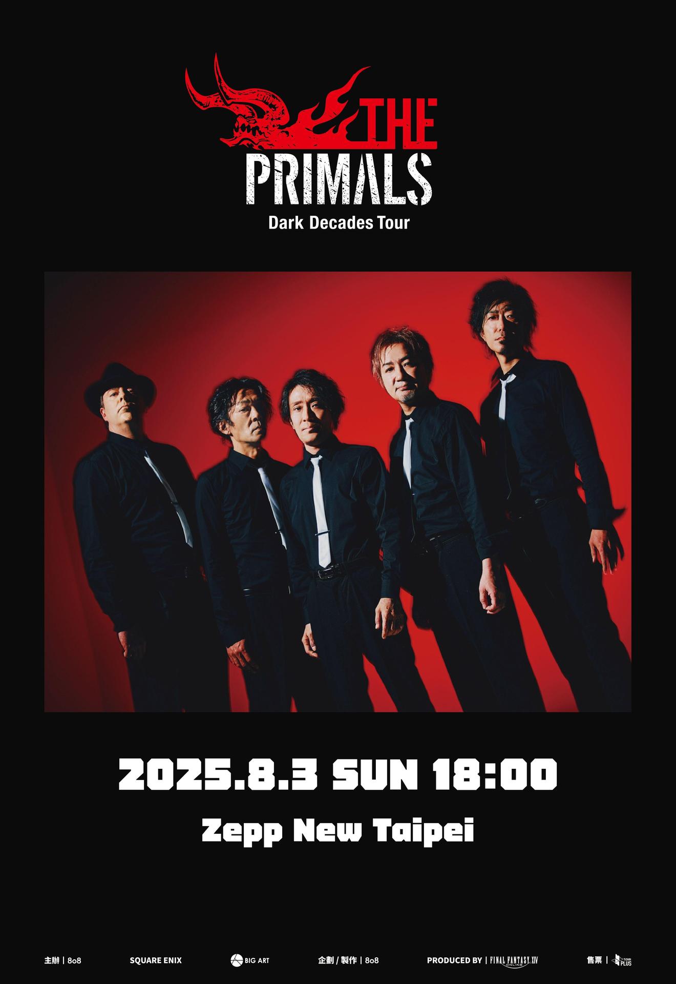 開場響起系列熟悉的水晶旋律,隨著主螢幕上出現名為「THE PRIMALS Dark Decades Tour」的副本介面,接著各職業主唱、吉他、貝斯、鼓手等依序配對組隊完成的訊息落下,THE PRIMALS登台以7.0資料片主題曲Open Sky - The Theme from Dawntrail揭開序幕,瞬間就把光之戰士們帶到最High的境界,緊接著一系列組曲演出後,主螢幕上出現了四樣台灣特色分別是台啤、珍珠奶茶去冰半糖、滷肉飯、不加香菜,祖堅老師除了大秀一波中文外也要大家用熱情選出一樣台灣特色改編Bee My Honey這首歌曲,最後在老師與光之戰士的熱情中一起唱出「Bee My 台啤」,隨著副本Boss一隻一隻的倒下,THE PRIMALS與光之戰士們來到了經典蠻神泰坦面前,過重圧殺! ~蛮神タイタン討滅戦~響起全場天搖地動彷彿泰坦就在眼前施展大地粉碎,當泰坦倒下之時樂團也一起退場了,光之戰士們開始施展召喚技能「安可」,黑幕中技能生效THE PRIMALS以White Stone Black回到舞台上,接著祖堅老師大喊讓我們把台北的時間暫停吧,第二首安可曲更是全場最高潮的ライズ 〜機工城アレキサンダー:天動編〜,面對亞歷山大施展技能時間停止,台上樂團與台下光之戰士們暫停一切動作彷彿時間真的停止了,完美重現遊戲原作中的副本機制,最後壓軸以ローカス ~機工城アレキサンダー:起動編~收尾,THE PRIMALS帶領光之戰士們闖過18關副本結束今晚演出。