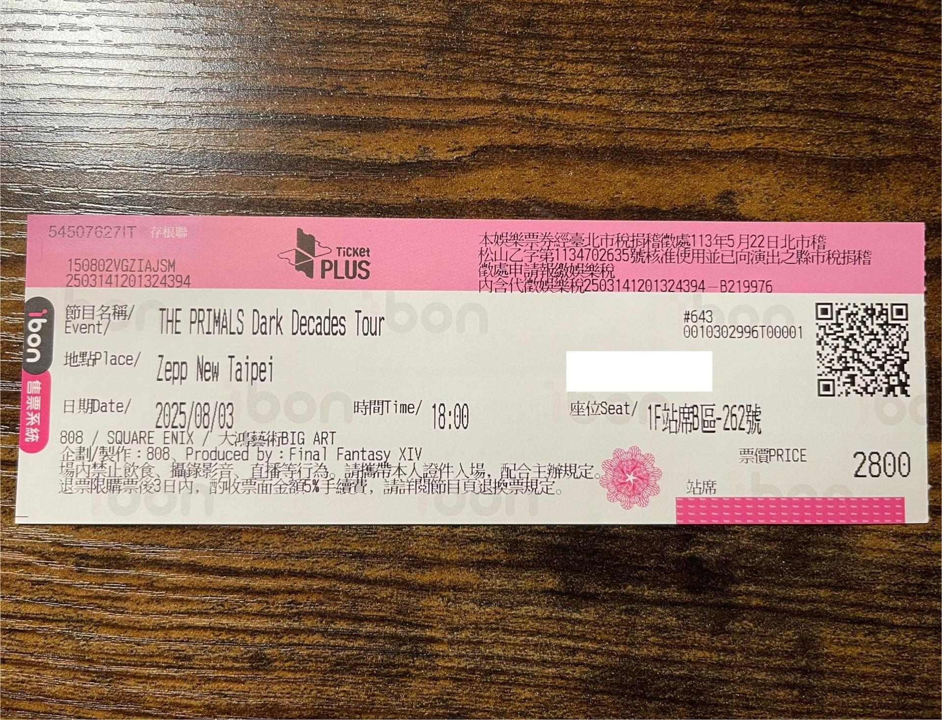回想起3月一次性公布了台灣很多FF14的消息包含遊戲、見面會活動、Live等,雖然沒抽到製作人的記者會暨玩家見面會,卻抽到祖堅老師的樂團Live「THE PRIMALS Dark Decades Tour」實名制資格,當下還是很慶幸自己至少沒有全數落選,時間飛快來到了8/3演出當日,此次公演是在Zepp New Taipei 舉行,依自己來過這場地的經驗就可預期動線肯定很差.........
