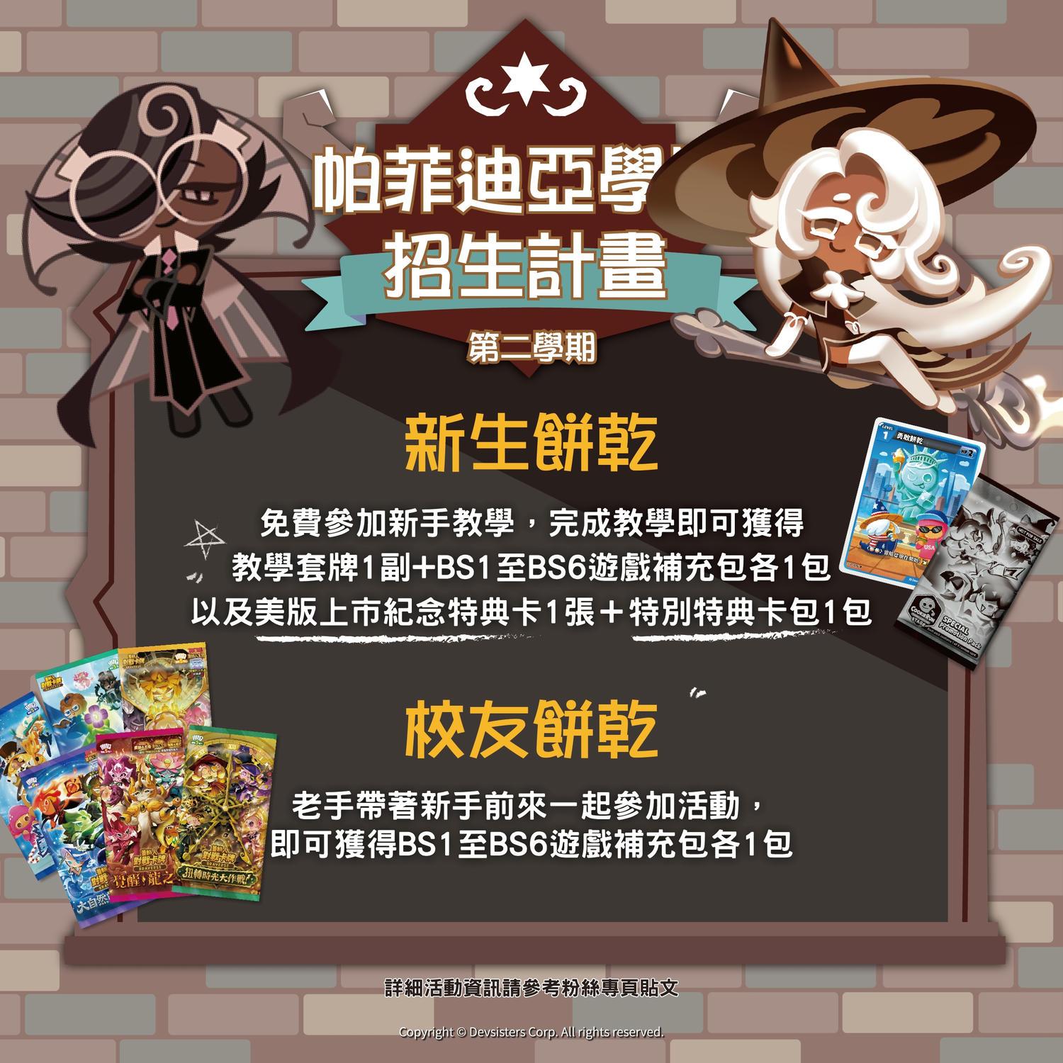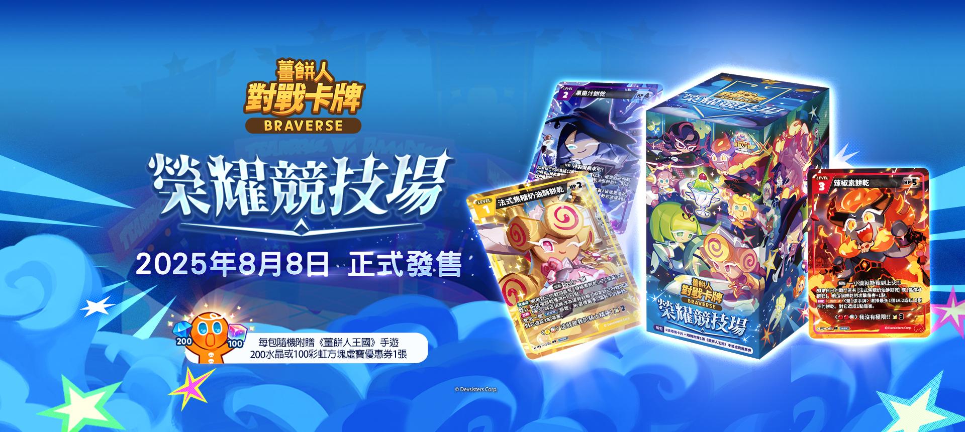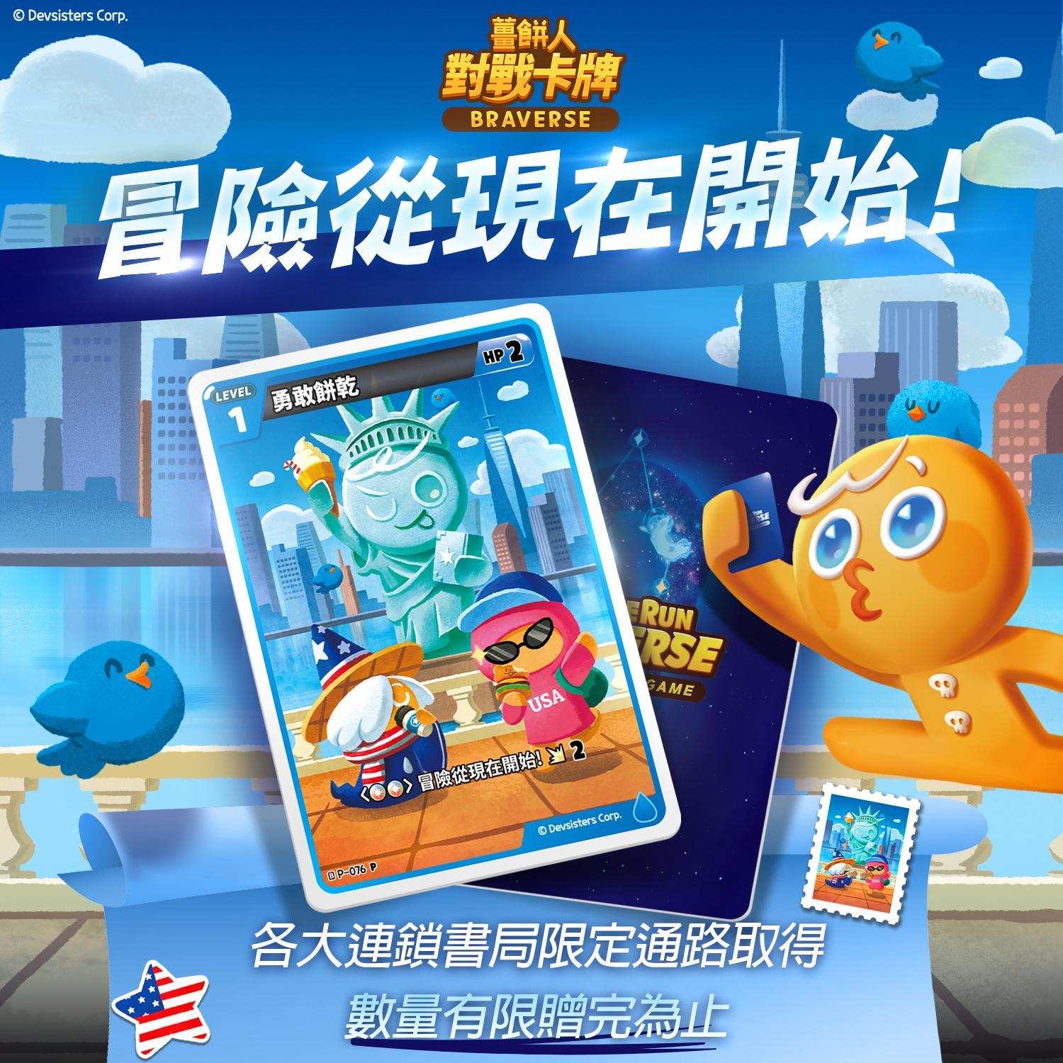 即日起,凡於指定書局購買《薑餅人對戰卡牌 Braverse》遊戲補充包,不限任何系列單筆消費滿 5 包,即可獲得限定特典卡「美國勇敢餅乾特典卡」 1 張。
