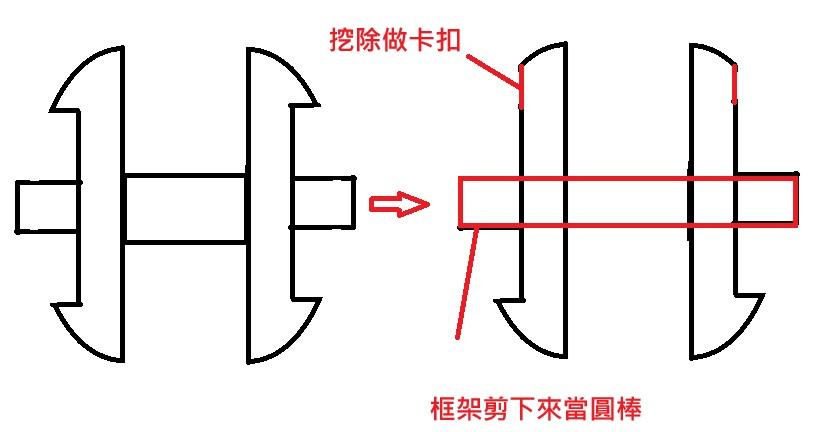 卡榫是直接嵌入肩膀,所以不能用之前的方式削短卡榫的方入套入