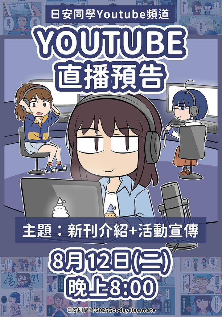 直播預告【日安同學Youtube頻道】8/12晚上8:00