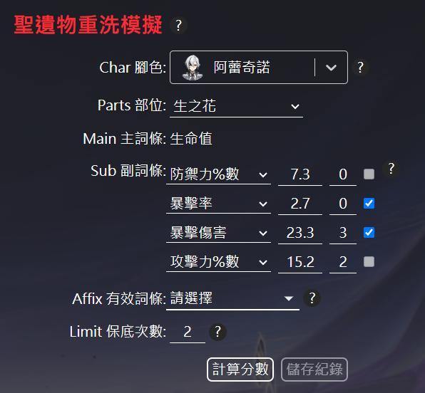 前陣子在崩鐵那邊有推出一個遺器重洗模擬器工具,剛寫完沒多久。原神就推出這個啟聖之塵可以洗聖遺物,而且使用細節上跟崩鐵上有點差別,害我想了很久XD