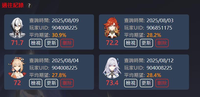 更新:依照該紀錄原參數再次查詢,再次查詢的結果會直接覆蓋該紀錄原本的內容。