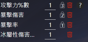 那它的運作邏輯是啥呢?首先我們只能給予會出現在副詞條上的詞條種類給予優先級,所以像屬性傷害、治療等都無法指定。接下來的部分用舉例會比較好理解。我今天指定這樣子.......